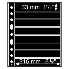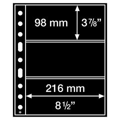 Item number: 800311Clear welded strips completely cover the inserted collection items, thereby offering optimum protection. Document quality: 100% free from chemical softeners and acids. 8-cm perforation. The clear C sheets allow one-sided storage, the double-sided black S sheets provide double capacity.