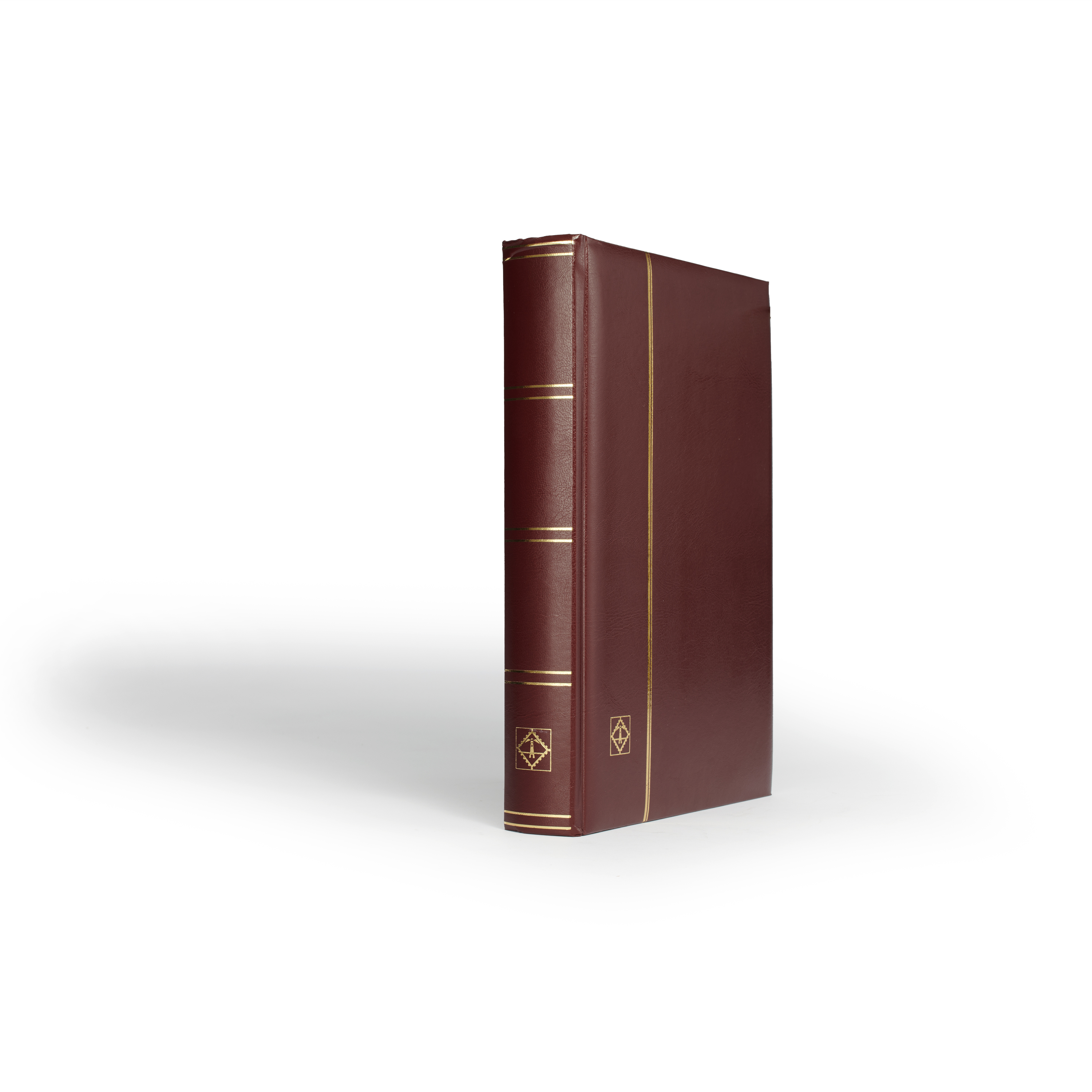 COMFORT A4 stockbook with 64 black pages, padded leatherette cover. The book features 9 clear glassine strips per page, double interleaves with double hinge binding.