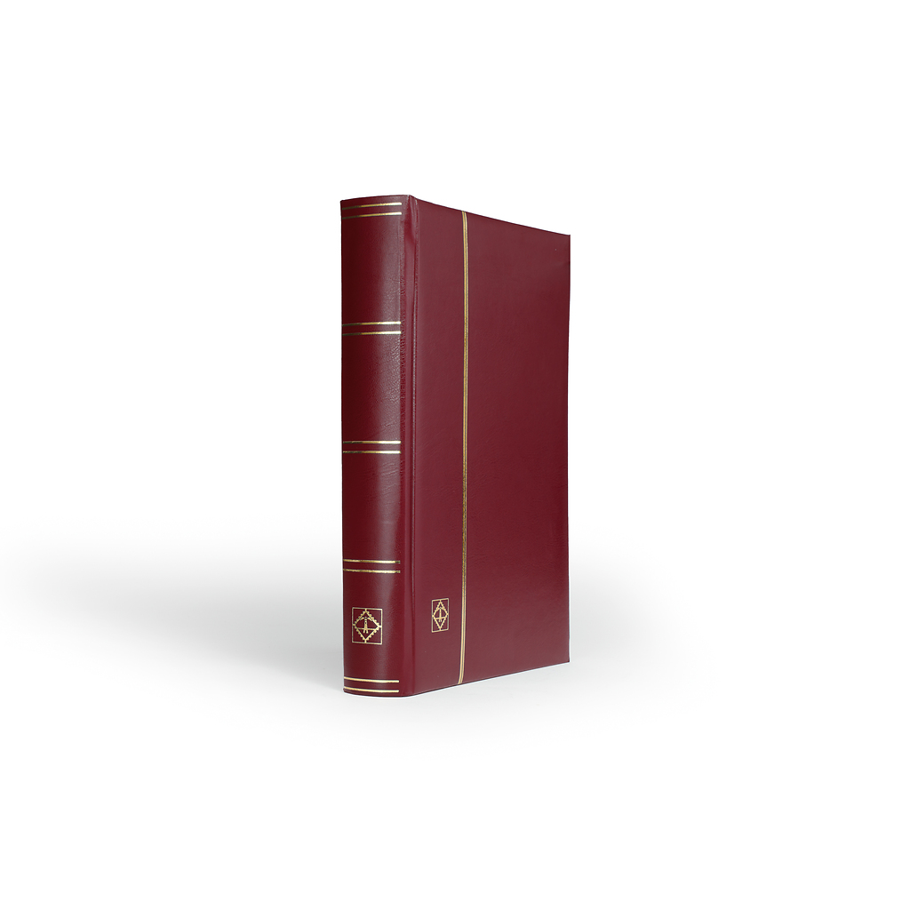 COMFORT A4 stockbook with 64 white pages, padded leatherette cover. The book features 9 clear glassine strips per page, double interleaves with double hinge binding.