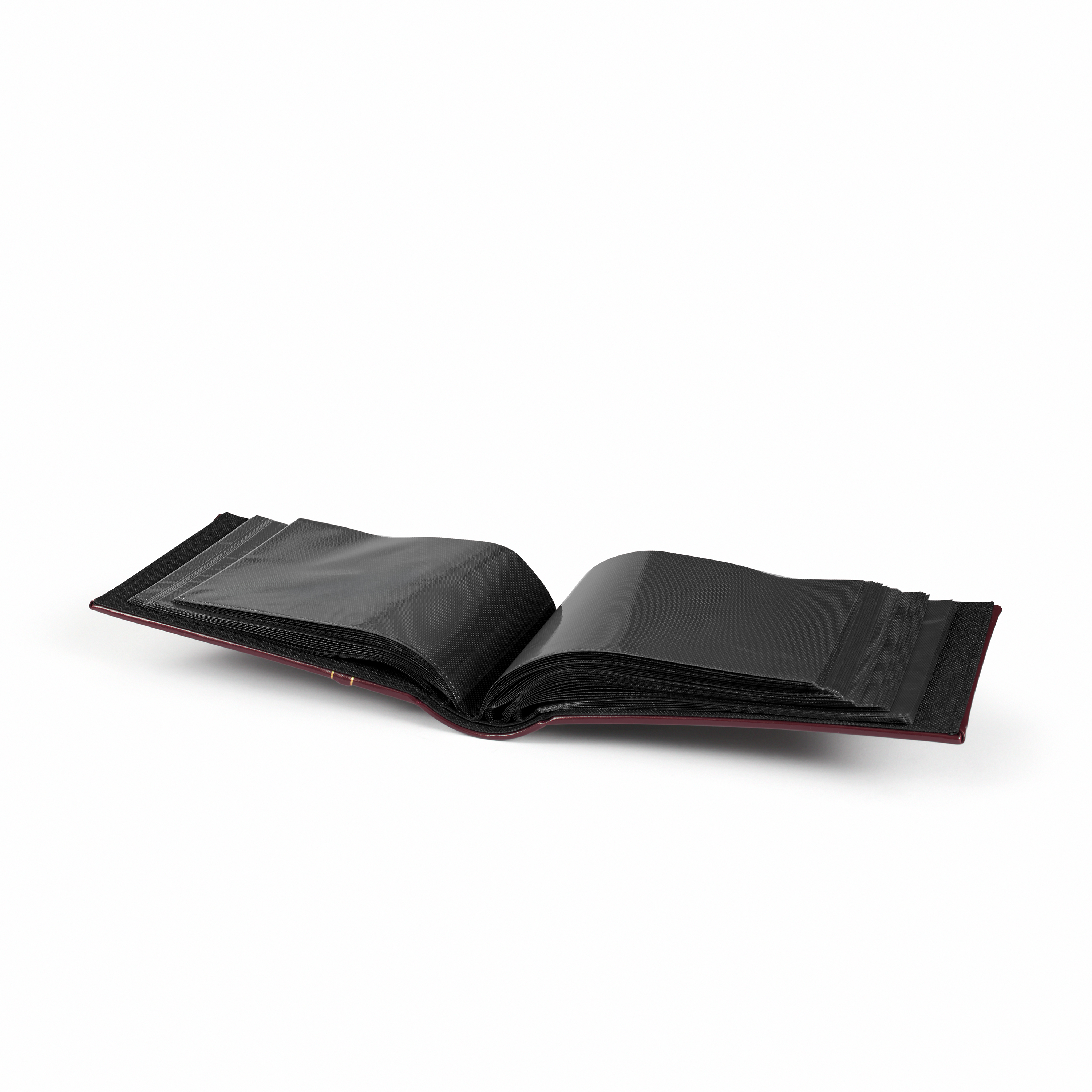 High-quality leatherette cover, bookbinder's quality with lockstitch steam. The sheets are closed on 3 sides, easy to fill from the top. Spine bound, thus the sheets will hold your documents securely in place. Holds documents up to 195 x 130 mm (7 3/4 x 5 1/4).