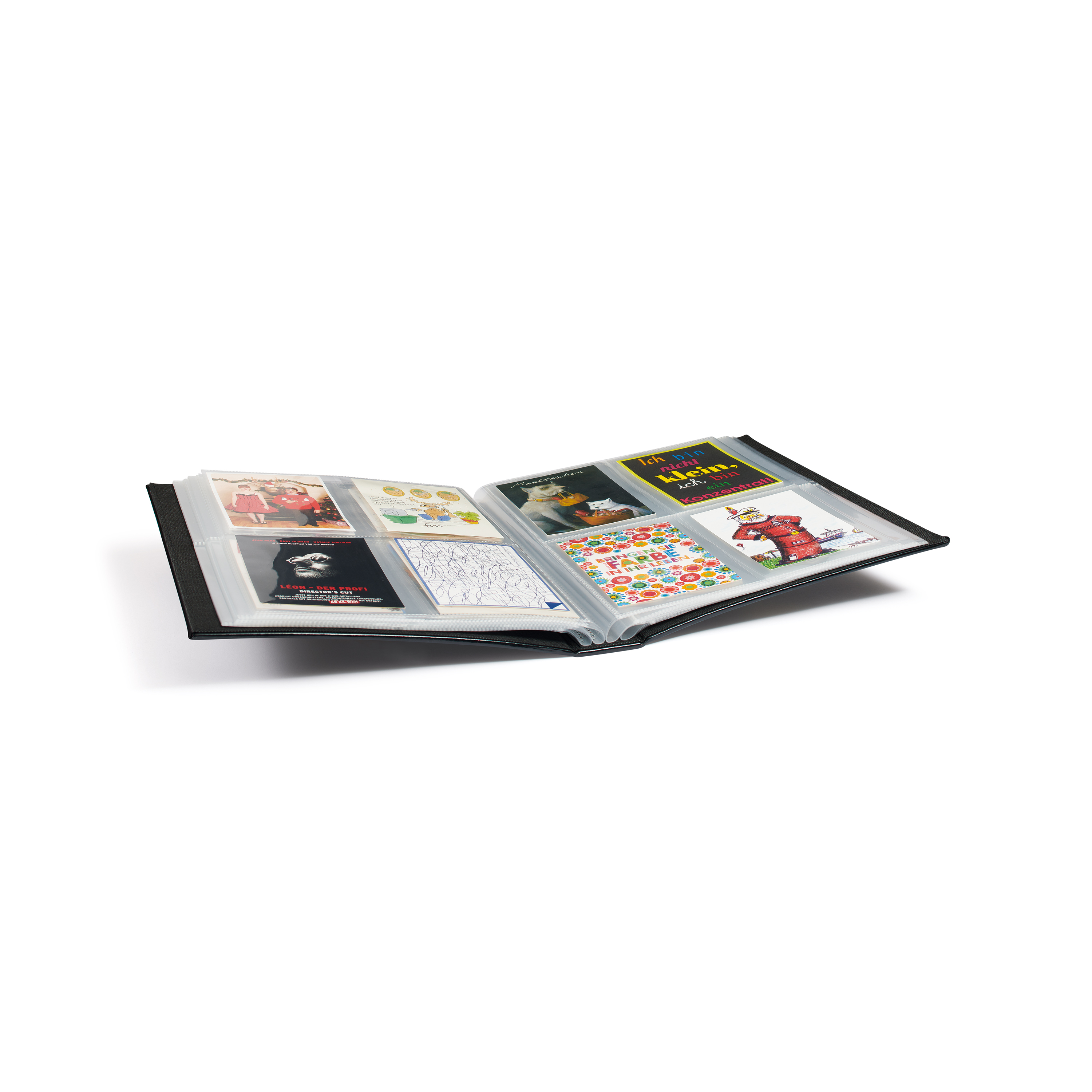 Sophisticated postcard album with 50 inbound sheets made of clear polypropylene. Each sheet holds up to 8
