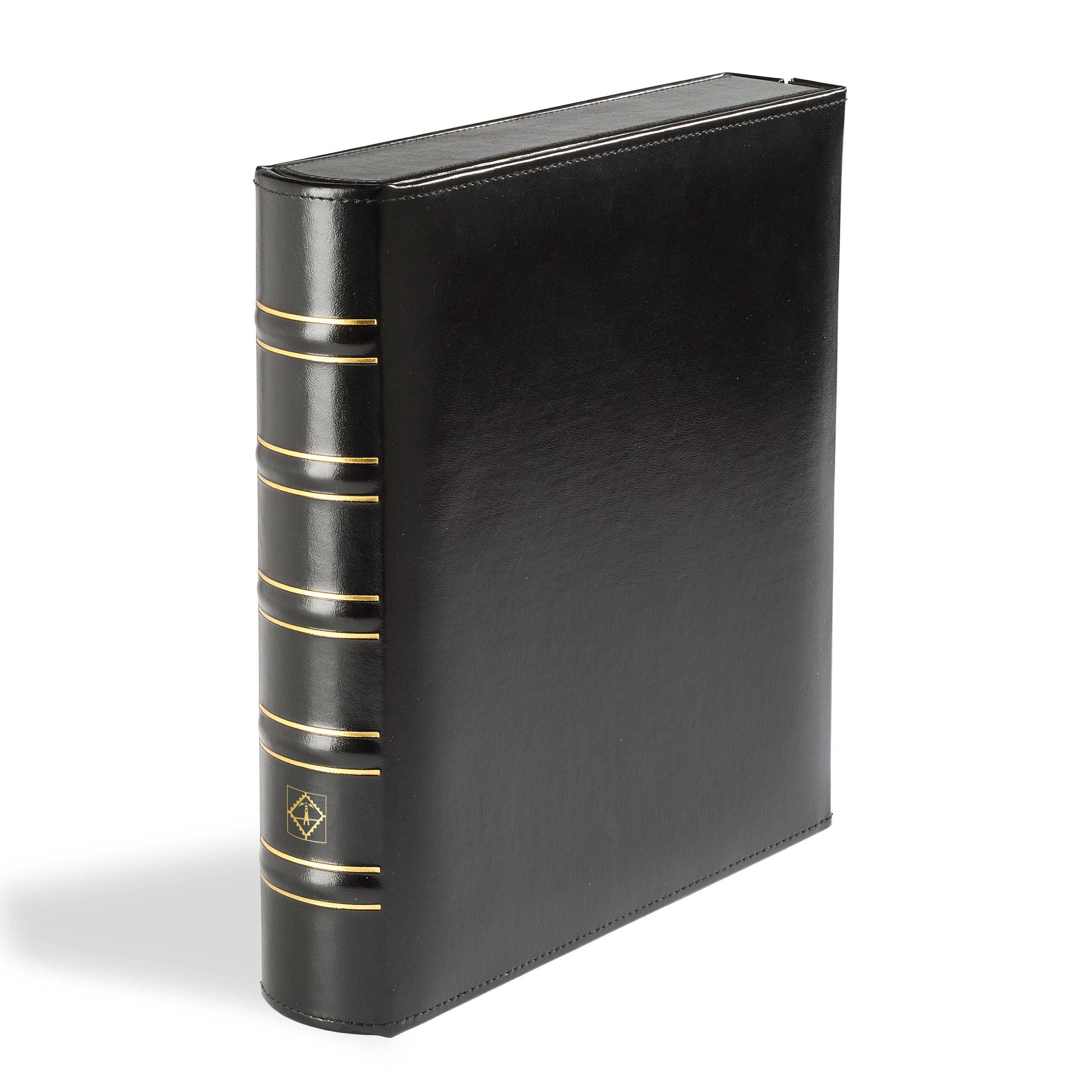Integrated, lockable slipcase to protect against dust and dirt. Capacity: up to 60 OPTIMA sheets or 15 OPTIMA coin sheets. Colour: black. Binder does not include sheets. Overall size: 250 x 55 x 275 mm (9 3 / 4 x 2 x 10 3 / 4 "). Binder excl. sheets.