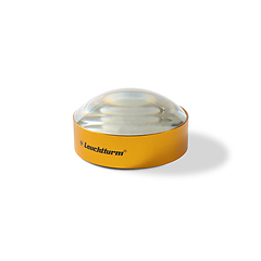 Bright field magnifier with 4x magnification. The glass lens (diameter: 75 mm) is placed directly on the item to be magnified. The plano-convex shape of the lens provides optimal light conditions and the surface below the magnifying glass appears brighter than the surrounding area. Consequently, the magnifier is perfect for reading or examining stamps or postcards. The bright field magnifying glass is handy and compact, and comes in a black velvet pouch that protects the lens from being scratched.