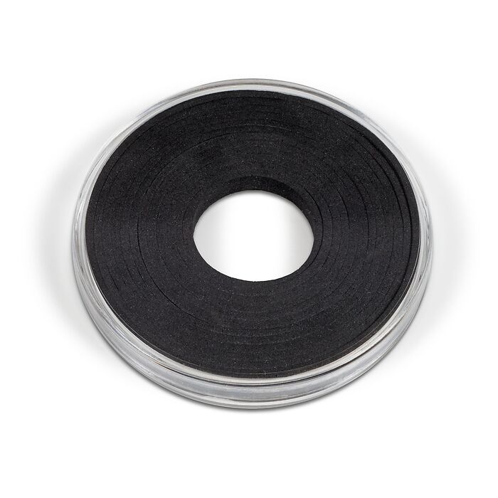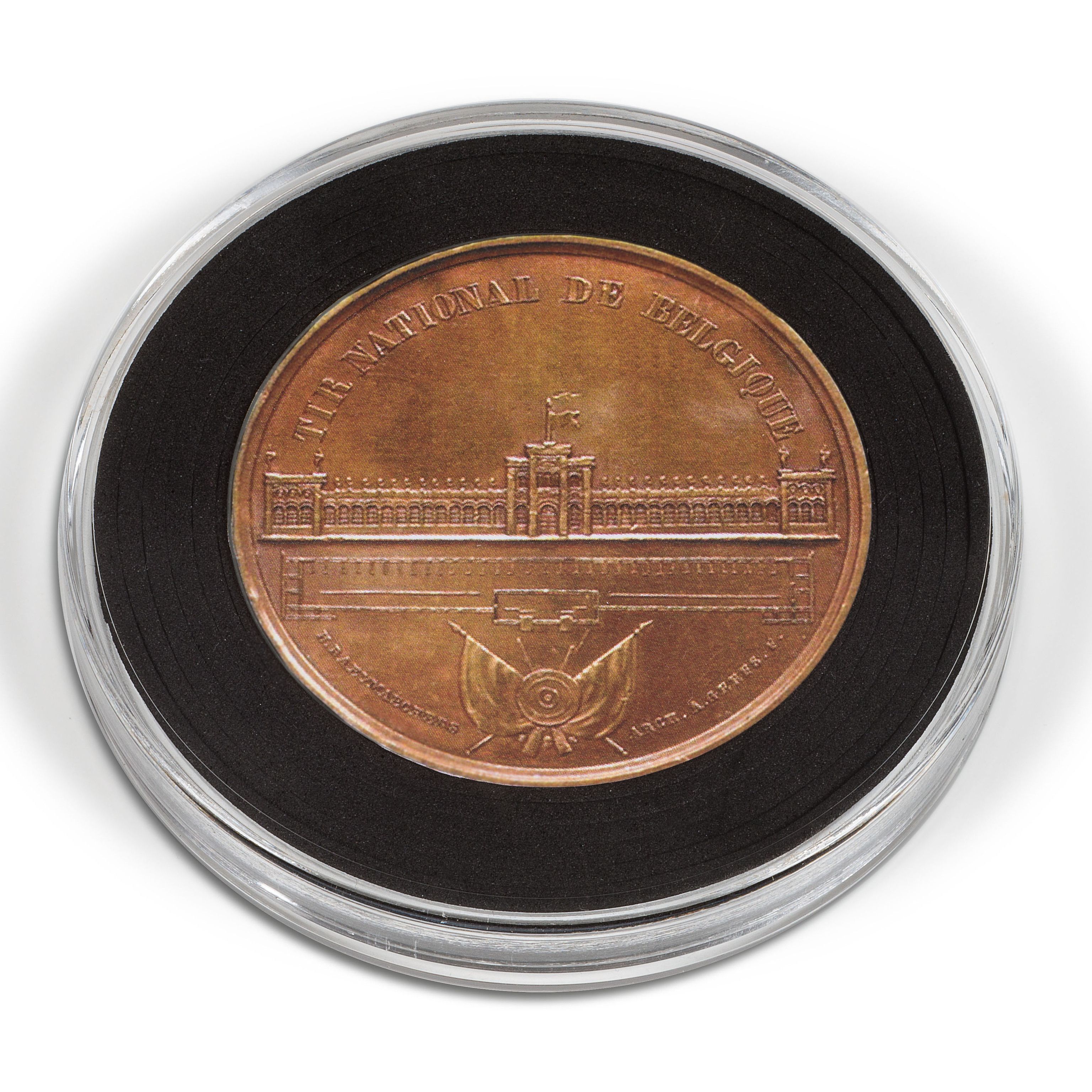 XL coin capsules are ideal for storing particularly large coins of up to 76 mm in diameter – for example, 5 oz “America the Beautiful” silver coins. They contain 12 individually removable spacing rings made from black foam (free from acid and chemical softeners), also allowing smaller coins of up to 29 mm in diameter to fit perfectly in the capsule. The inside height of the capsule is 6.3 mm, while the exterior height is 12 mm. Exterior diameter: 82.4 mm.