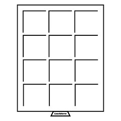 Clear stacking frame with dark blue tray, velvet-blue insert, suitable for safe deposit boxes. This tray is equipped with 12 square compartments and is ideal for storing coins up to a diameter of 50 mm. Overall size (h/w/d): 19 x 195 x 250 mm.