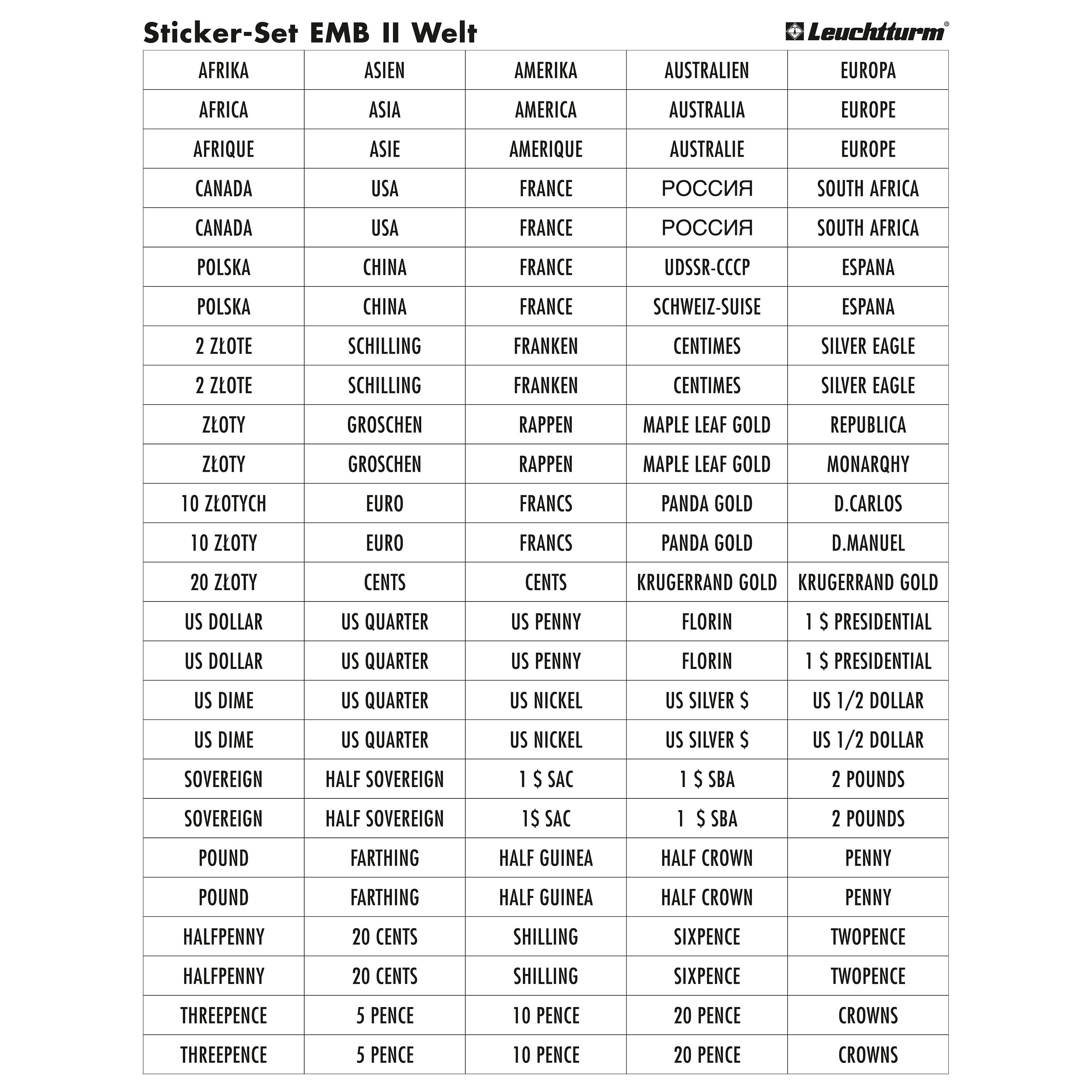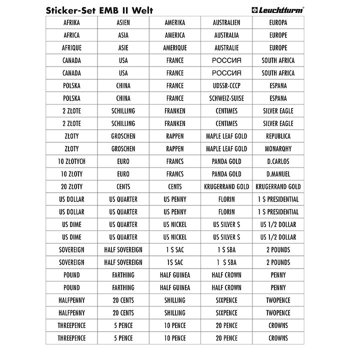 Item number: 325543Labels for "Coins from Around the World” Coin Boxes