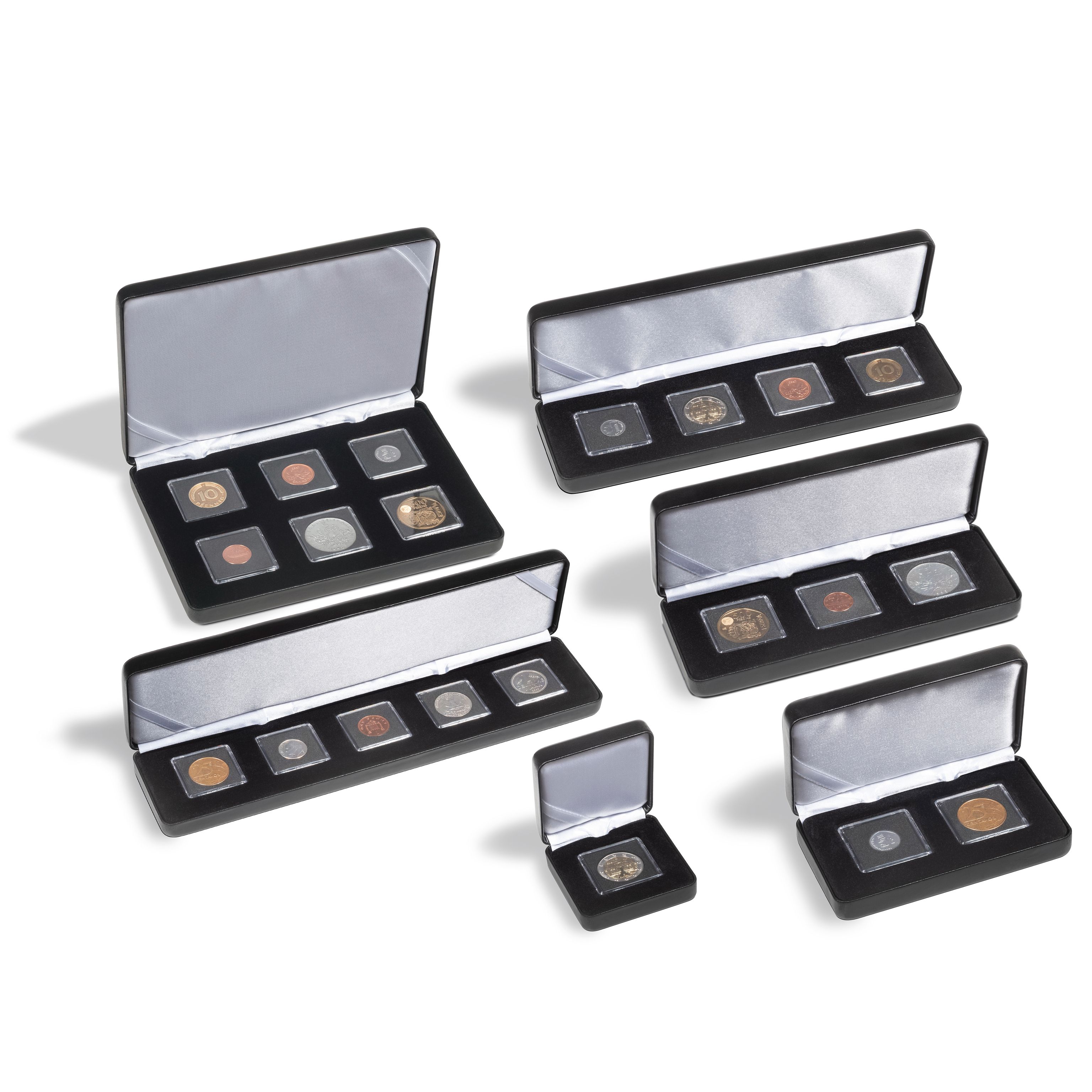 For the most elegant presentation of encapsulated coins may we recommend these high-quality coin boxes with silk-lined lid. A satin ribbon inside the lid can hold a certificate if desired. A sturdy metal frame protects the coin and thus makes it perfectly safe for postage as well as storage. Also suitable for QUADRUM square coin capsules. Suitable for LIGHTHOUSE QUADRUM Mini capsules.