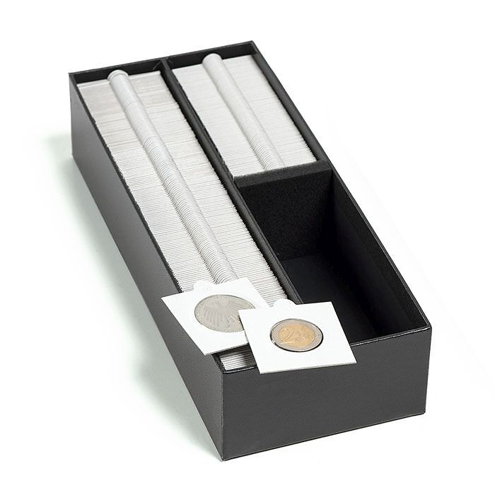 The coin holders made with 100% sturdy card offer optimal protection from environmental influences, thanks to the use of film which is free of chemical softener. Handling of coins without touching the surface. Simply place the coin in the open frame and press the 2 sides together. The coin holders can be labelled if desired which would aid to a better organisation.