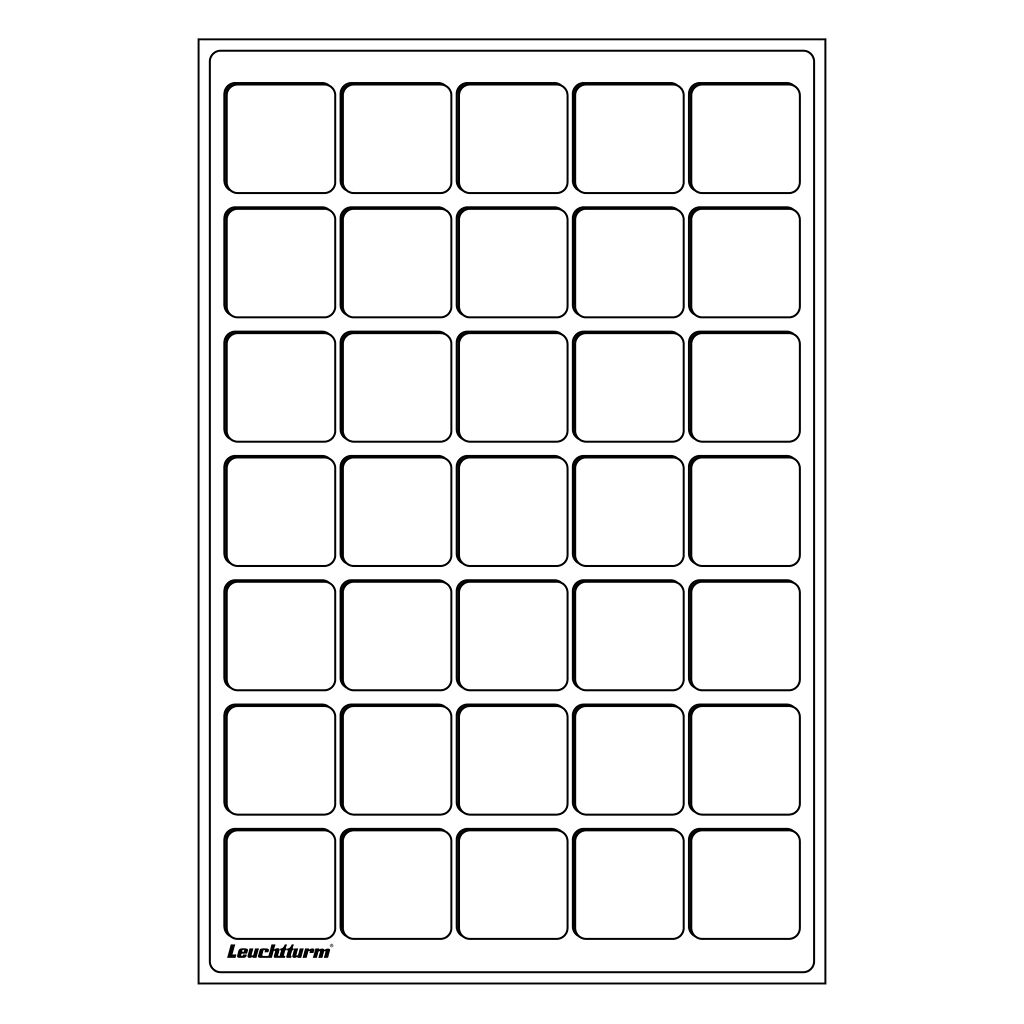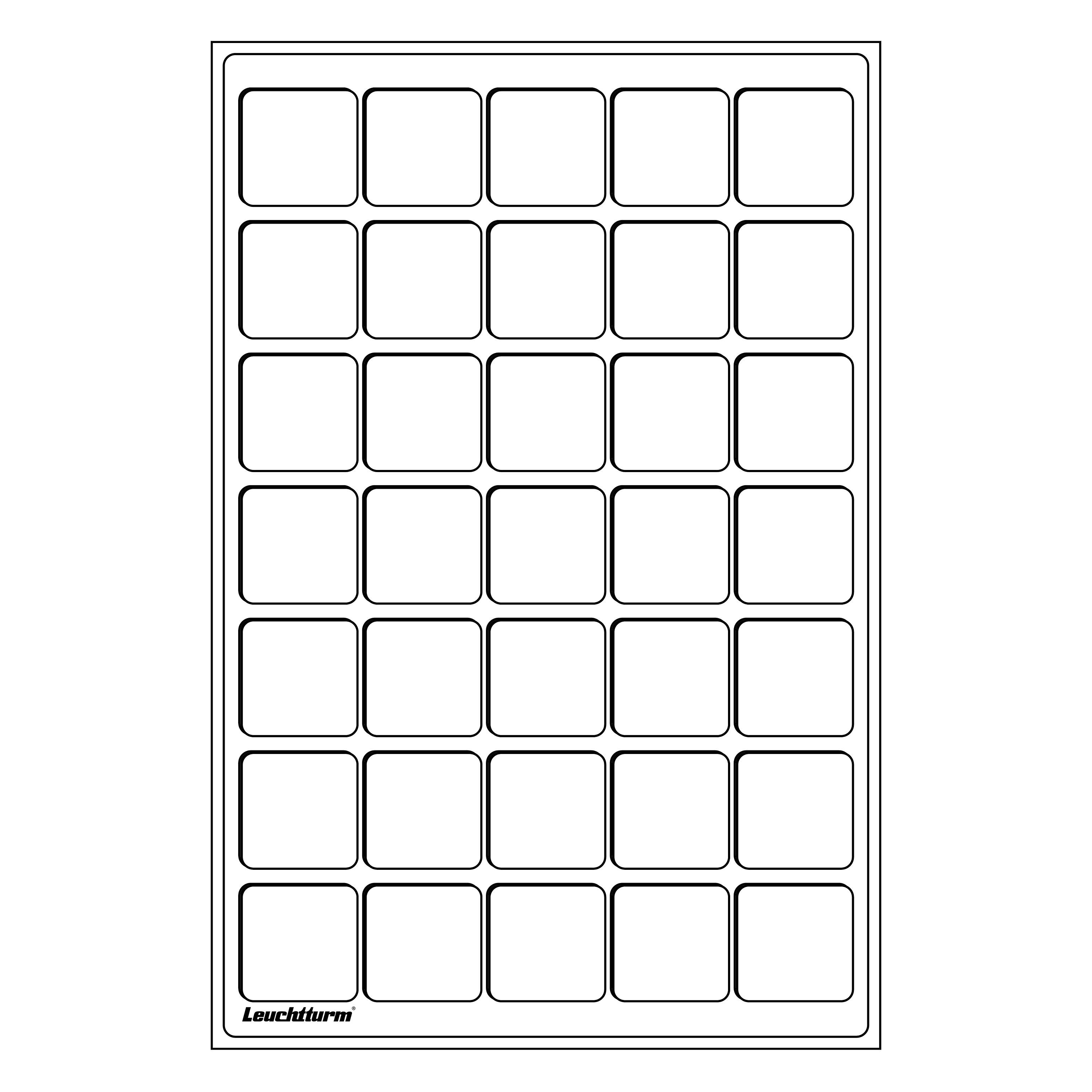 Tray with 35 rectangular compartments for coins up to 39 mm Ø (eg. 10 Euro in capsule). Suitable for casino chips.Tray lined with mock-velour surface. Suitable for coin cases CARGO L6 (empty) and KO6 + presentation case MK 4T (blank).