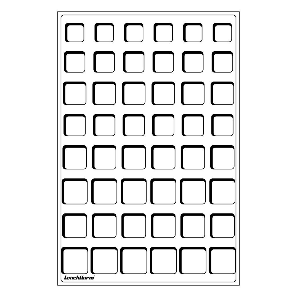 Tray with 48 rectangular compartments for 6 encapsulated or non-capsulated complete euro coin sets. Tray lined with quality mock-velour material. Suitable for coin case CARGO L6 (empty), CARGO L12 (empty) + presentation case L.