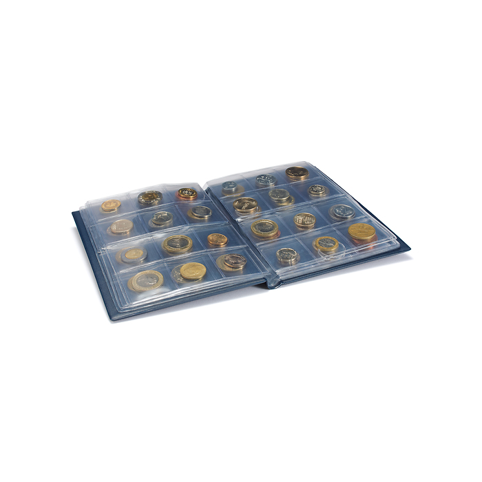 Your best companion for any coin show. Coin Wallet with 8 Coin Sheets each for 12 coins, blue