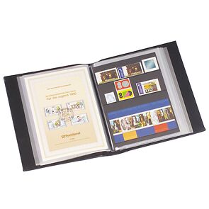 • With 50 double-paged, clear sheets free from plasticisers • Usable space 195 x 130 mm • Top-quality leatherette cover
