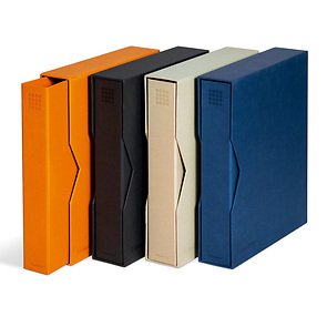 • Stylish linen-look linen cover • Completely PVC-free • Sturdy 4 D-ring mechanism • Holds up to 60 GRANDE sheets or 6 ENCAP coin sheets • Binder is available with or without slipcase