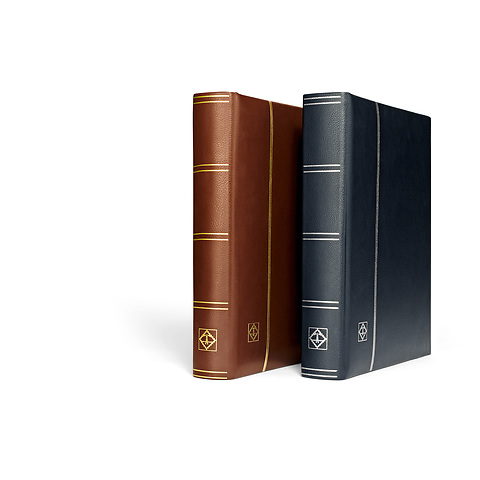 • Leatherette cover • 9 clear strips per page • Double glassine interleaves • 64 black pages • Double-hinged binding
