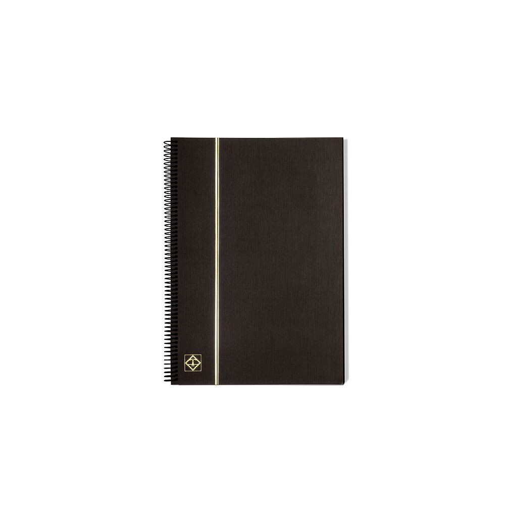 Stamp drying book with 10 sheets made from extra-strong blotting card and 10 extra strong interleaves. These maintain the shape of the drying book even after many years of use and prevent the stamps from sticking. Card cover and spiral binding.
