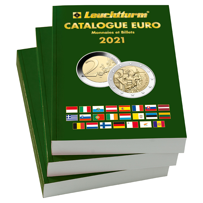 Le catalogue EURO de la maison LEUCHTTURM propose une présentation complète de toutes les pièces, billets et séries d’euros émis depuis l’introduction de l‘euro dans les différents pays. Le livre donne des informations détaillées relatives aux séries d’euros courants, un récapitulatif de toutes les pièces de 2 euros commémoratives ainsi que les caractéristiques des émissions communes à tous les pays de la zone euro. La nouvelle édition du catalogue paraît chaque année au 1er décembre. Toutes les monnaies connues à l’échéance rédactionnelle sont mentionnées dans le catalogue et les tirages des monnaies sont remis à jour à chaque édition. Des illustrations en couleurs facilitent la recherche des monnaies. Son actualisation régulière et son prix modique font de ce catalogue un ouvrage de référence indispensable pour tout collectionneur d‘euros.