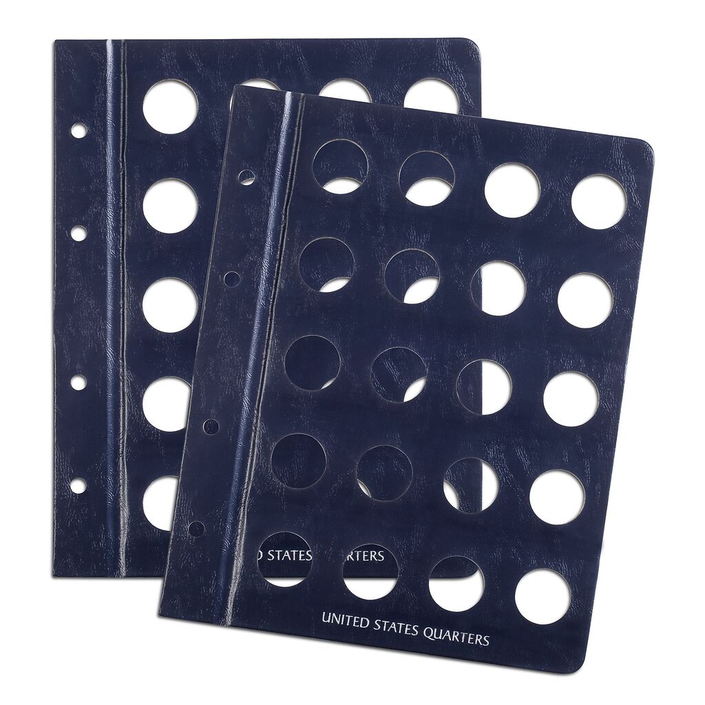 Dark blue coin sheet with 20 cut-outs and silver overprint to complement the VISTA National Park Quarters coin album or the VISTA Statehood Quarters album.