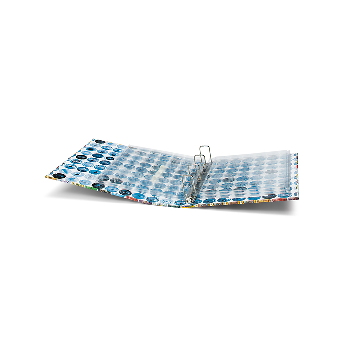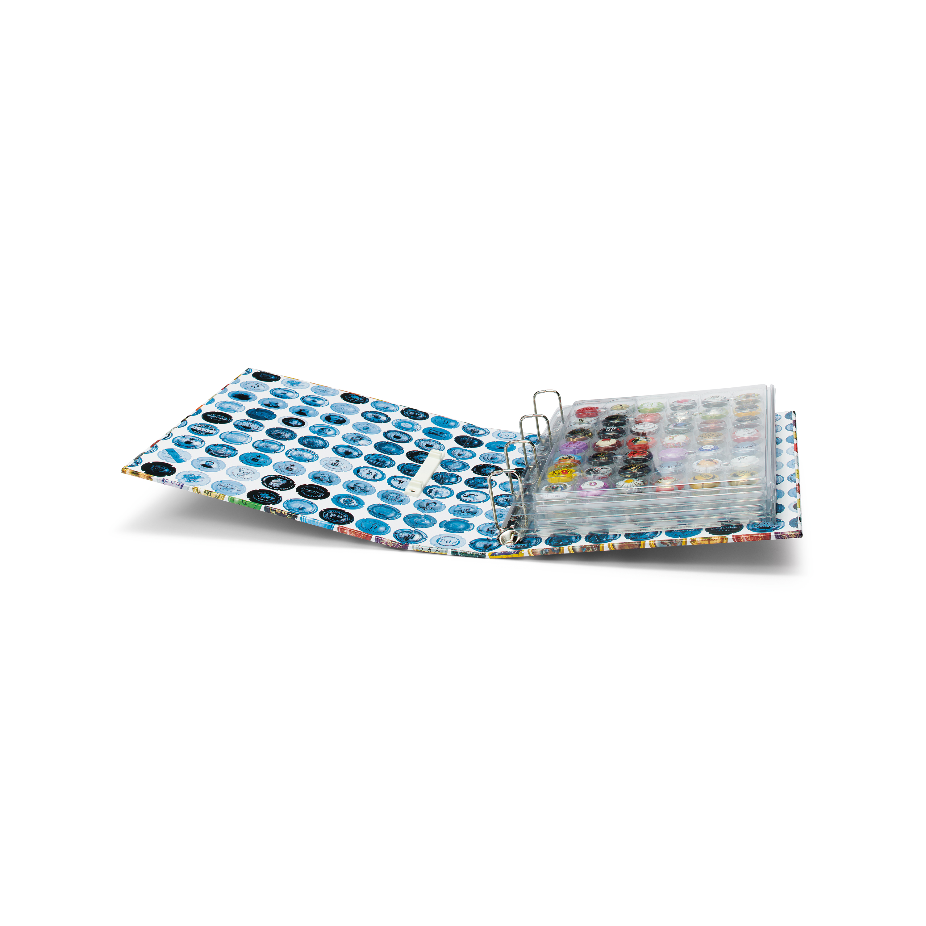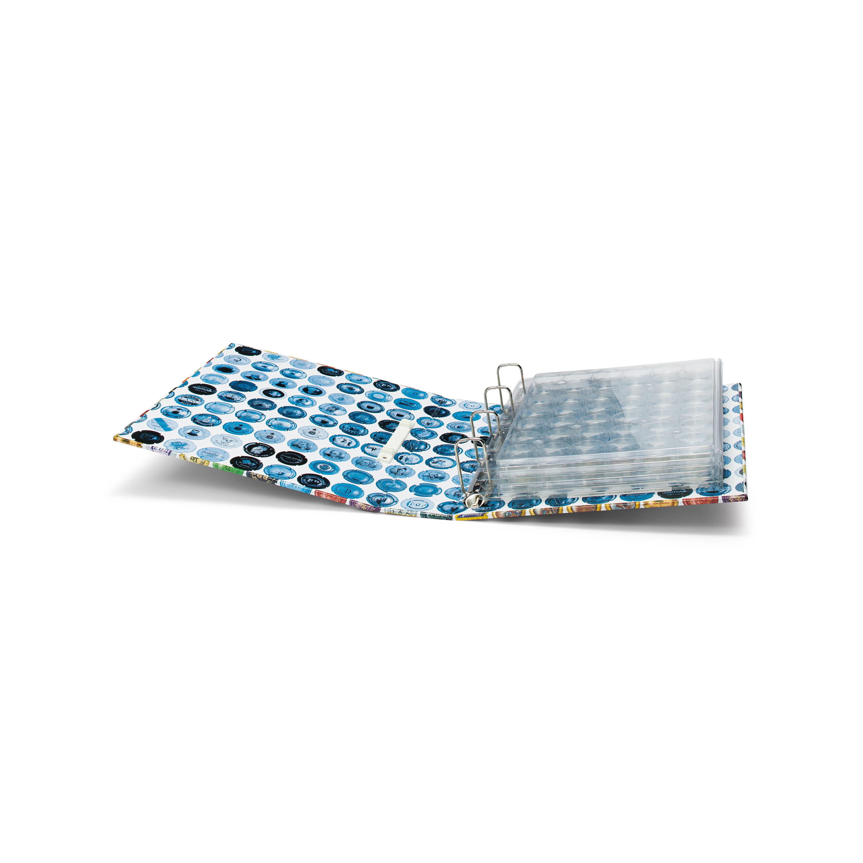 Item number: 324238Ringbinder GRANDE with ENCAP clear sheets, incl. 4 sheets ENCAP for 168 champagne bottle caps. 5 white interleaves included.
