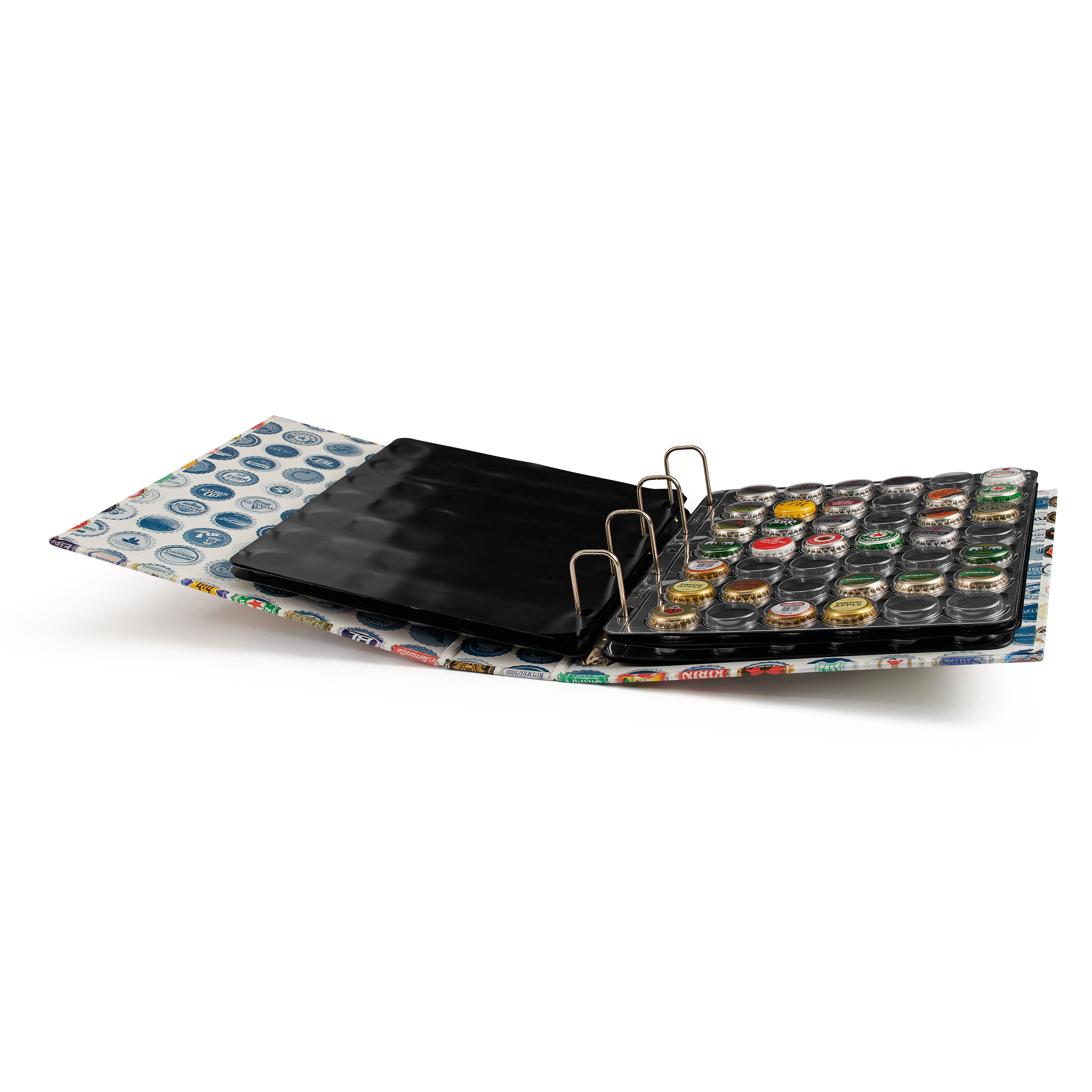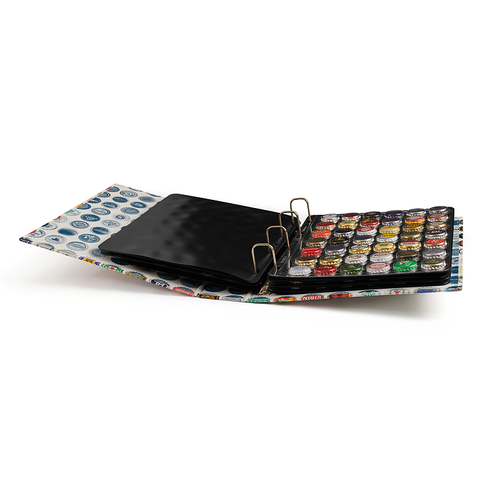 Komplett-Album mit 5 Hüllen 305080 für 210 gebrauchte Kronkorken, inkl. 5 schwarze Zwischenblätter. Das Album kann mit Hilfe von Ersatzhüllen erweitert werden (Gesamt-Fassungsvermögen: 9 Hüllen = 378 Kronkorken). Jede Hülle fasst bis zu 42 gebrauchte Kron