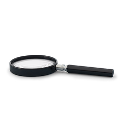 Magnifier glass with handle. Acrylic lens with lens diameter of 75 mm (approx. 3") Magnification: 2.5x and 5x
