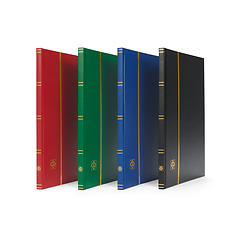A4 format Stock Book = 16, 32 or 64 white pages rigid binding, 9 glassine strips per page, doubled interleaves.
