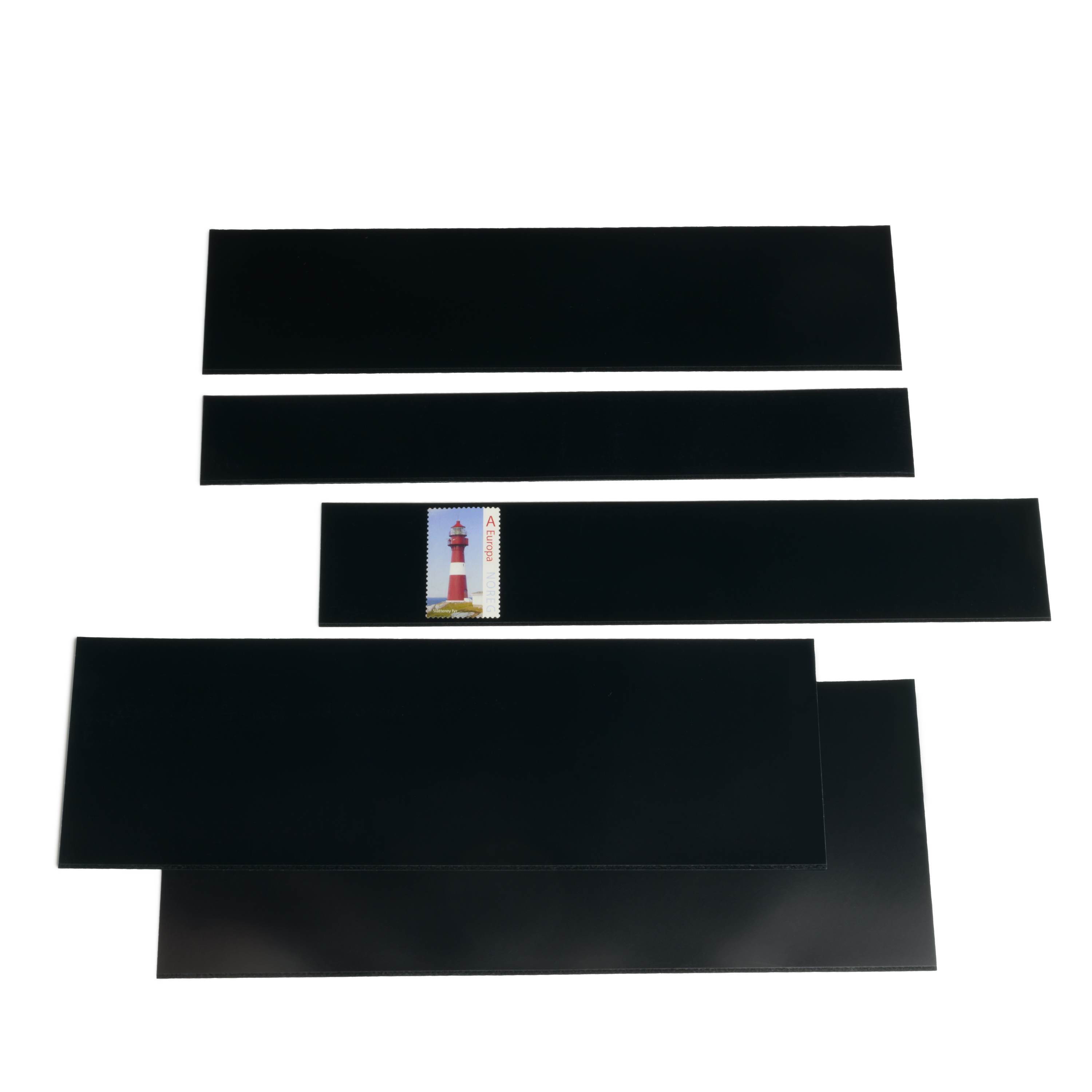 217 mm (8 1 / 2 ’’) long strips, you can cut to your requirements. The stamp mounts featuring a black backing film highlight the stamp’s perforated edge, showcasing the actual stamp.