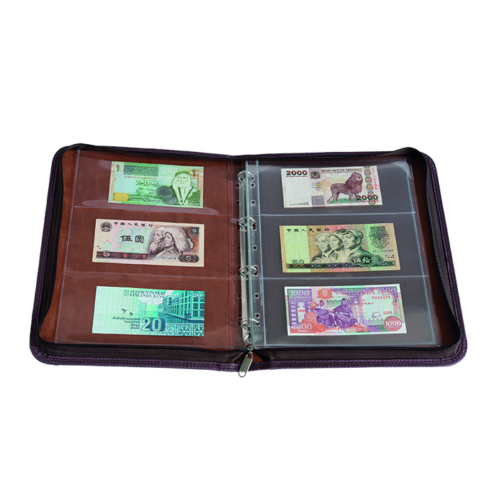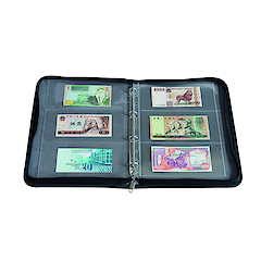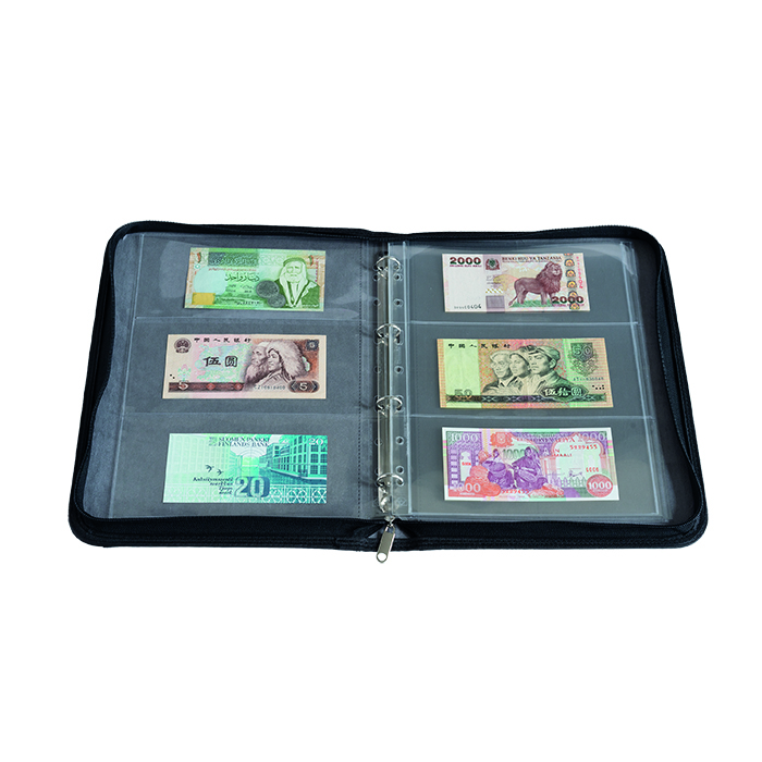 Premium „KURT” ring binder portfolio in leather-look for the storage of coins, stamps, banknotes, postcards, and much more. You collection if optimally protected from damage and loss by the sturdy zipper closure. Capacity up to 30 GRANDE sheets or 3 ENCAP coin sheets. Sturdy 4-D ring mechanism. Outer size closed: 350 x 270 x 35. Sheets not included.