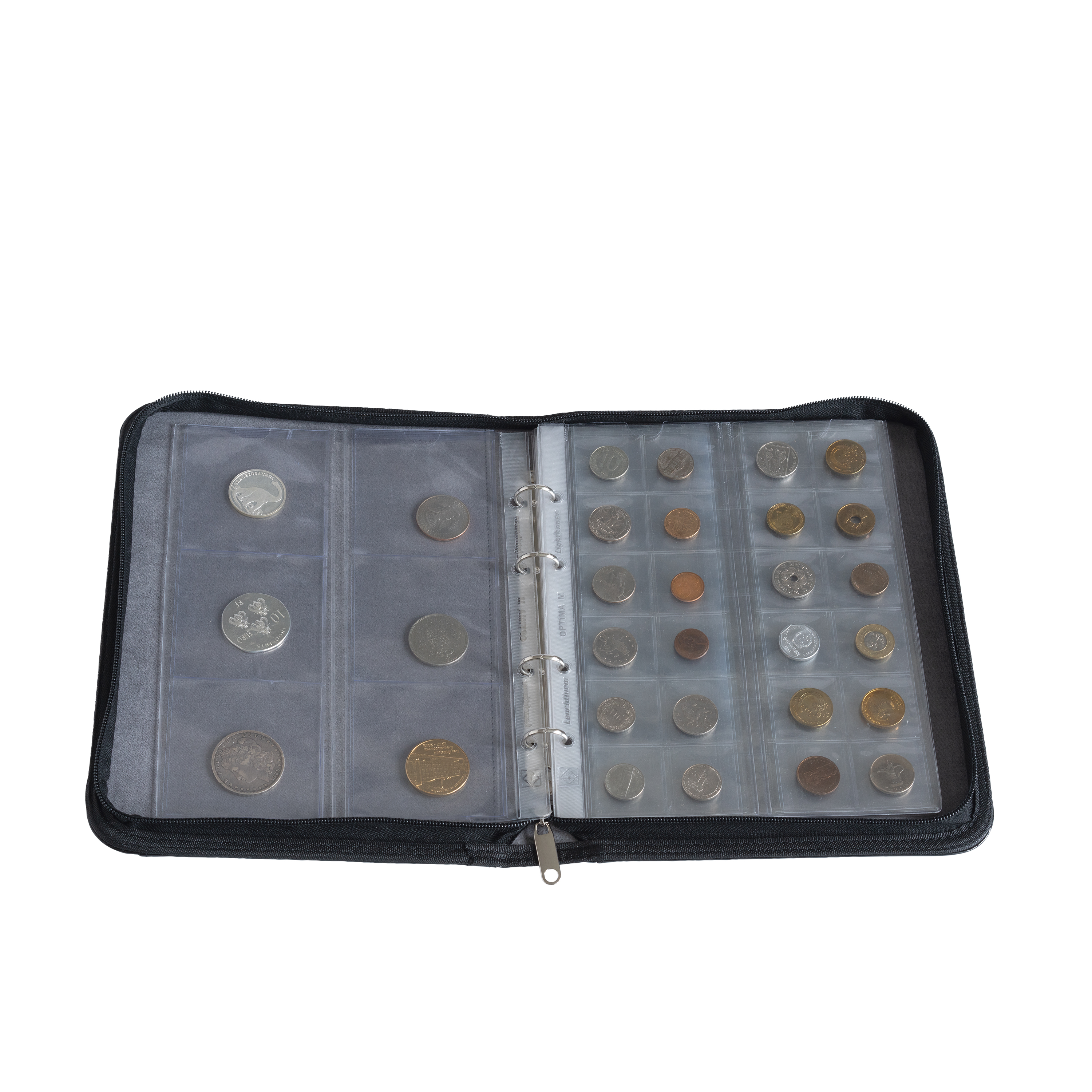 Premium „KURT” ring binder portfolio in leather-look for the storage of coins, stamps, banknotes, postcards, and much more. You collection if optimally protected from damage and loss by the sturdy zipper closure. Capacity up to 30 OPTIMA sheets or 10 OPTIMA coin sheets. Sturdy 4-D ring mechanism. Outer size closed: 285 x 225 x 35 mm. Sheets not included.
