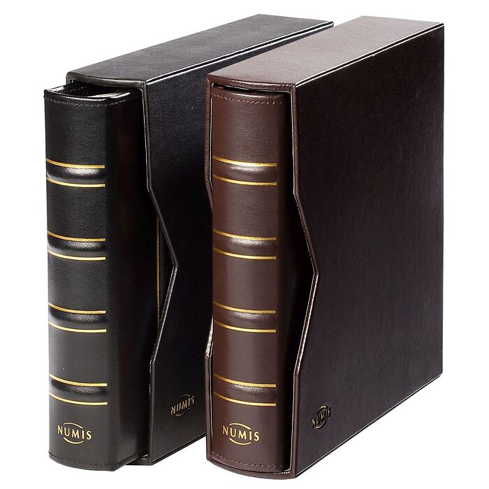 Leather Binder NUMIS, in classic design, leatherette slipcase