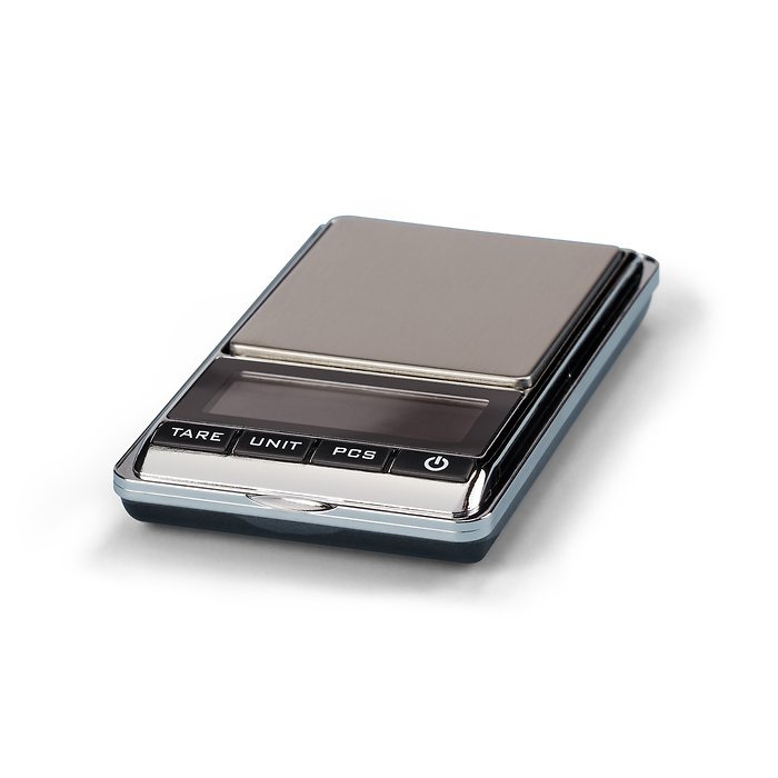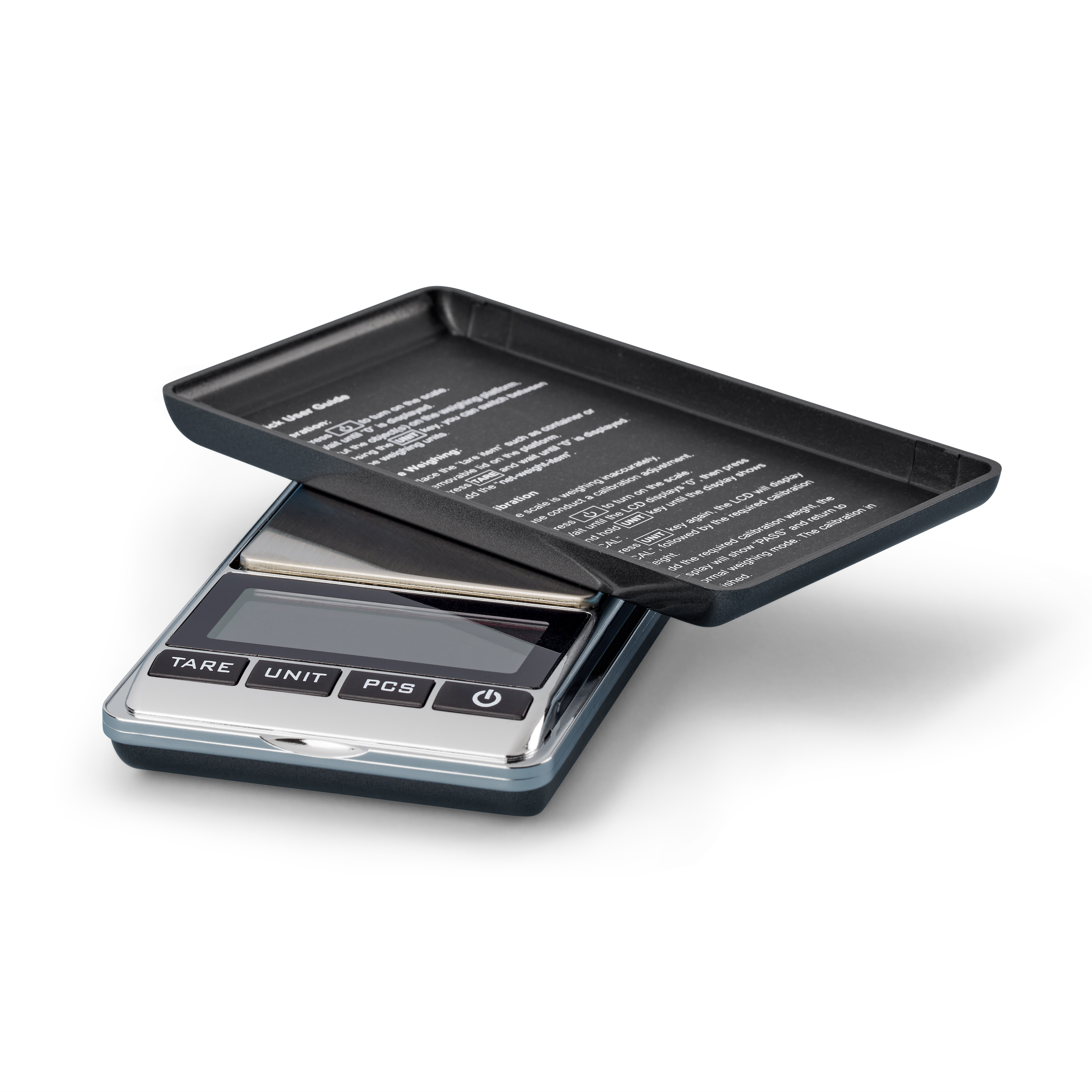 Digital coin scale in a handy pocket size. Weighing range 0.1–500 g weight tolerance +/- 0.3 g. Illuminated LCD display with automatic switch-off after 60 seconds to conserve battery. 6 different weighing units: g, oz, ozt, dwt, ct and gn. The scale has a zeroising and counting function as well as a large stainless steel weighing platform. The detachable protective cover can be used as a weighing pan. Includes batteries (2x AAA). Overall size: 64 x 116 x 17 mm (2 1/2 x 4 1/2 x 5/8")