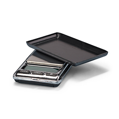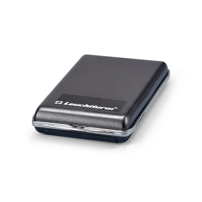 Digital coin scale in a handy miniature size. Weighing range 0.01–100 g, weight tolerance +/- 0.03 g. Illuminated LCD display with automatic switch-off after 60 seconds to conserve battery. 6 different weighing units: g, oz, ozt, dwt, ct and gn. Zeroising function. The detachable protective cover can be used as a weighing pan. Including battery (1x CR2032). Overall size: 45 x 76 x 13 mm (1 3/4 x 3 x 1/2")