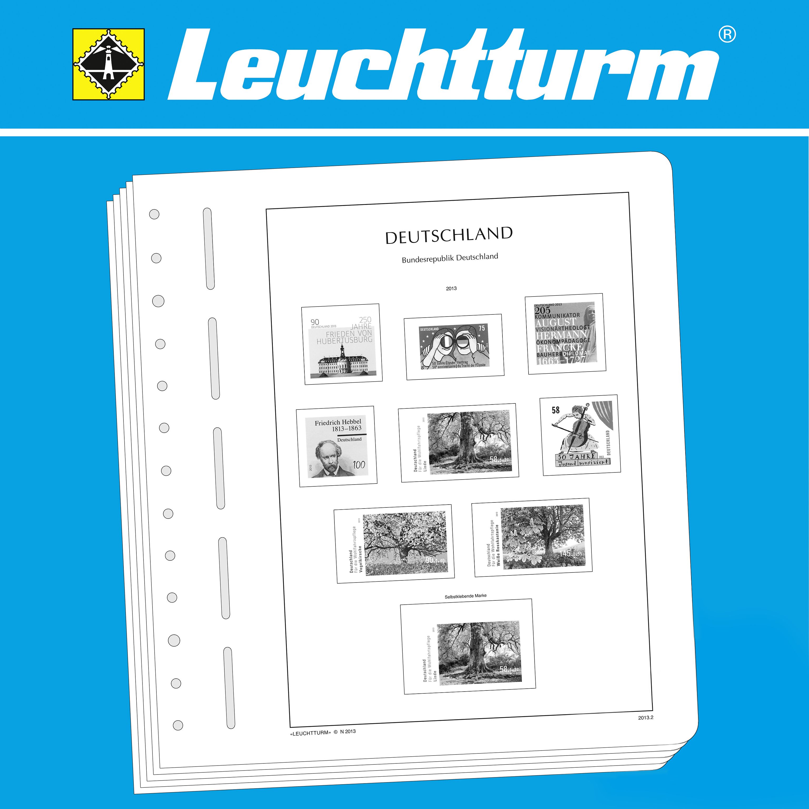 LIGHTHOUSE illustrated pages (size 270 x 297 mm/13-hole system) are printed on non-ageing wood and acid-free card (170 g/m 2 ) in high-resolution black and white offset print. Colour printing is consciously avoided. This allows you to immediately spot the missing stamps in your collection.