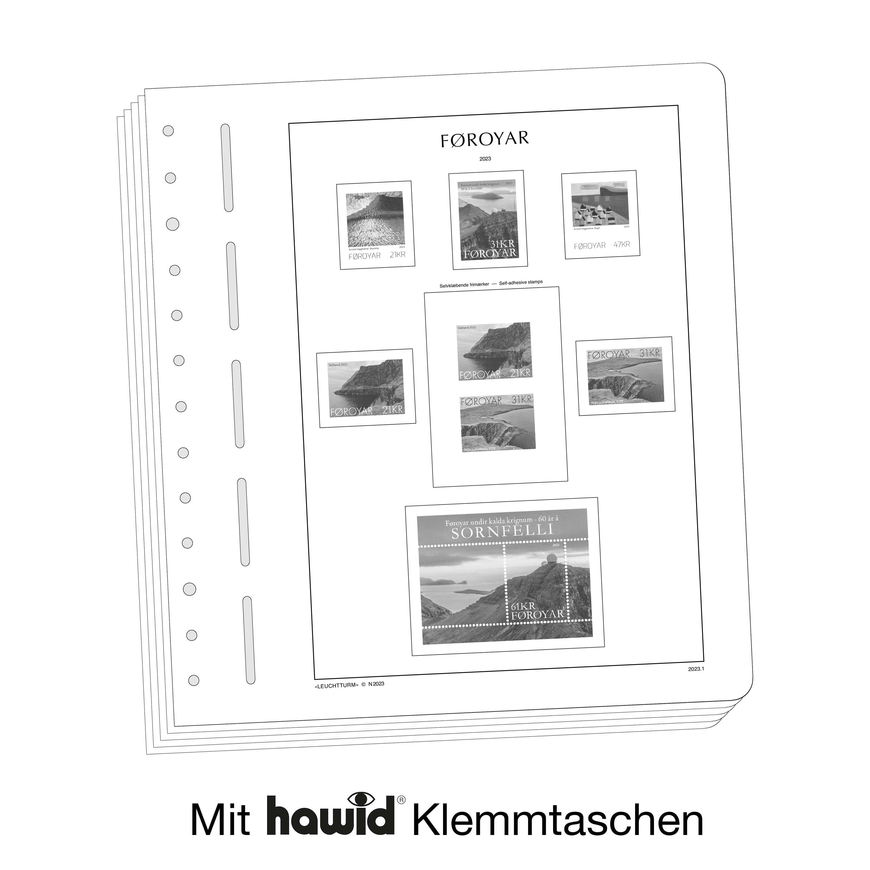 LIGHTHOUSE illustrated pages (size 270 x 297 mm/13-hole system) are printed on non-ageing wood and acid-free card (170 g/m 2 ) in high-resolution black and white offset print. Colour printing is consciously avoided. This allows you to immediately spot the missing stamps in your collection.