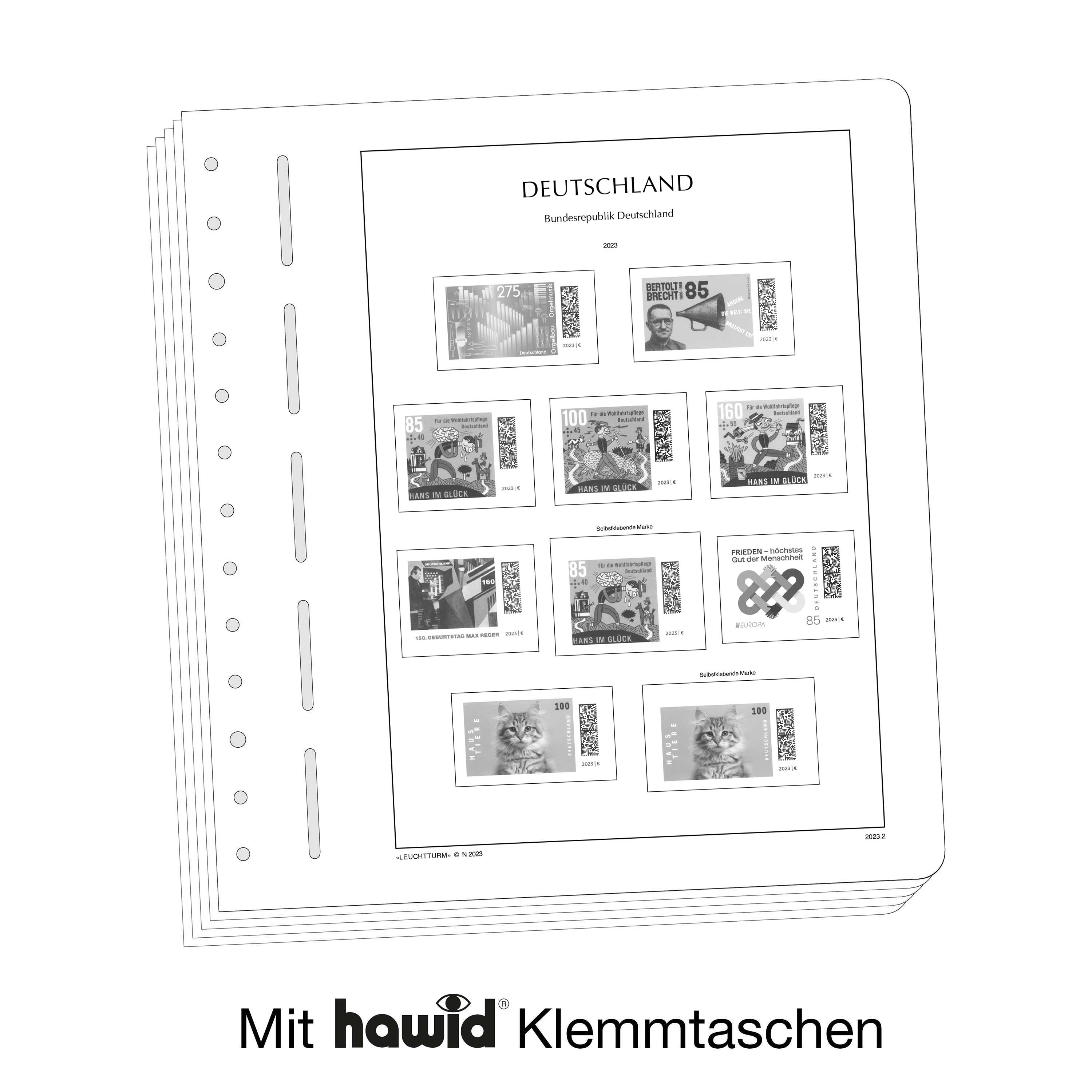 LIGHTHOUSE illustrated pages (size 270 x 297 mm/13-hole system) are printed on non-ageing wood and acid-free card (170 g/m 2 ) in high-resolution black and white offset print. Colour printing is consciously avoided. This allows you to immediately spot the missing stamps in your collection.
