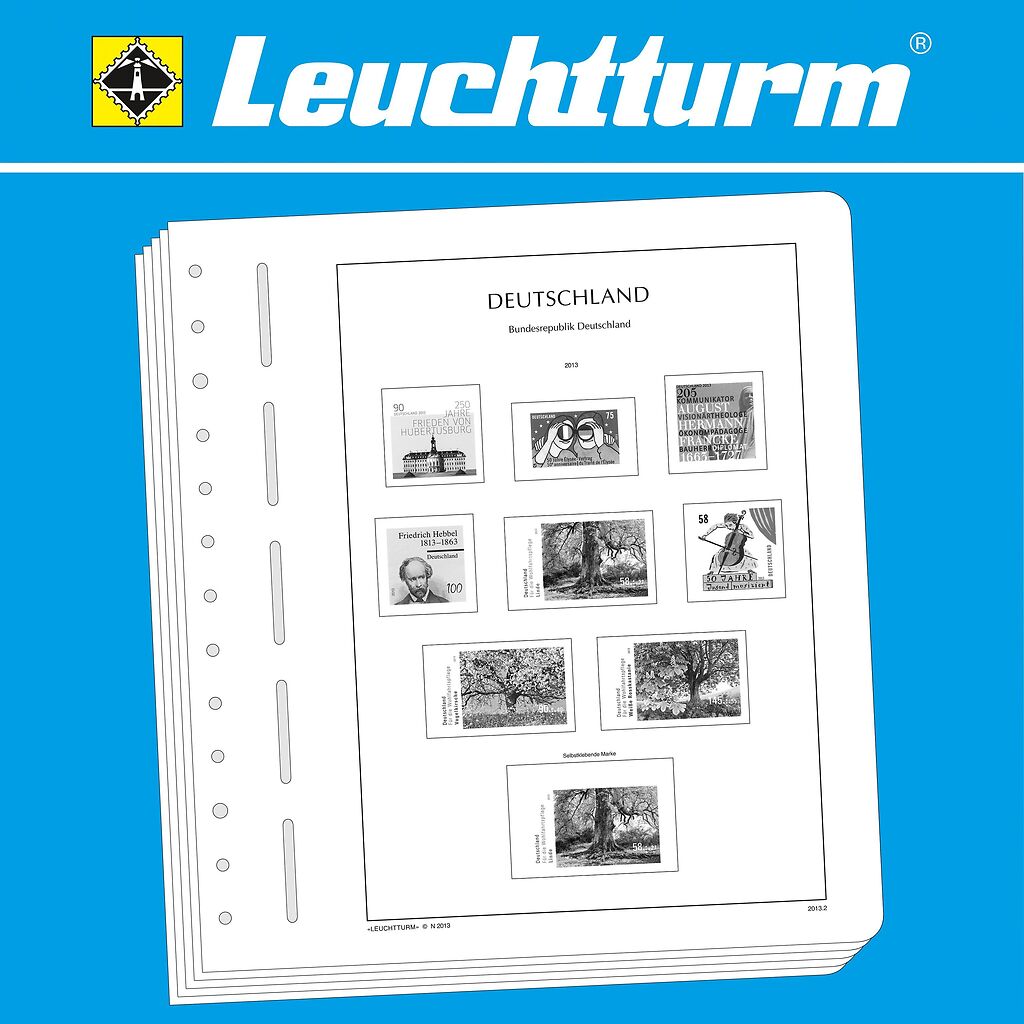LIGHTHOUSE illustrated pages (size 270 x 297 mm/13-hole system) are printed on non-ageing wood and acid-free card (170 g/m 2 ) in high-resolution black and white offset print. Colour printing is consciously avoided. This allows you to immediately spot the missing stamps in your collection.