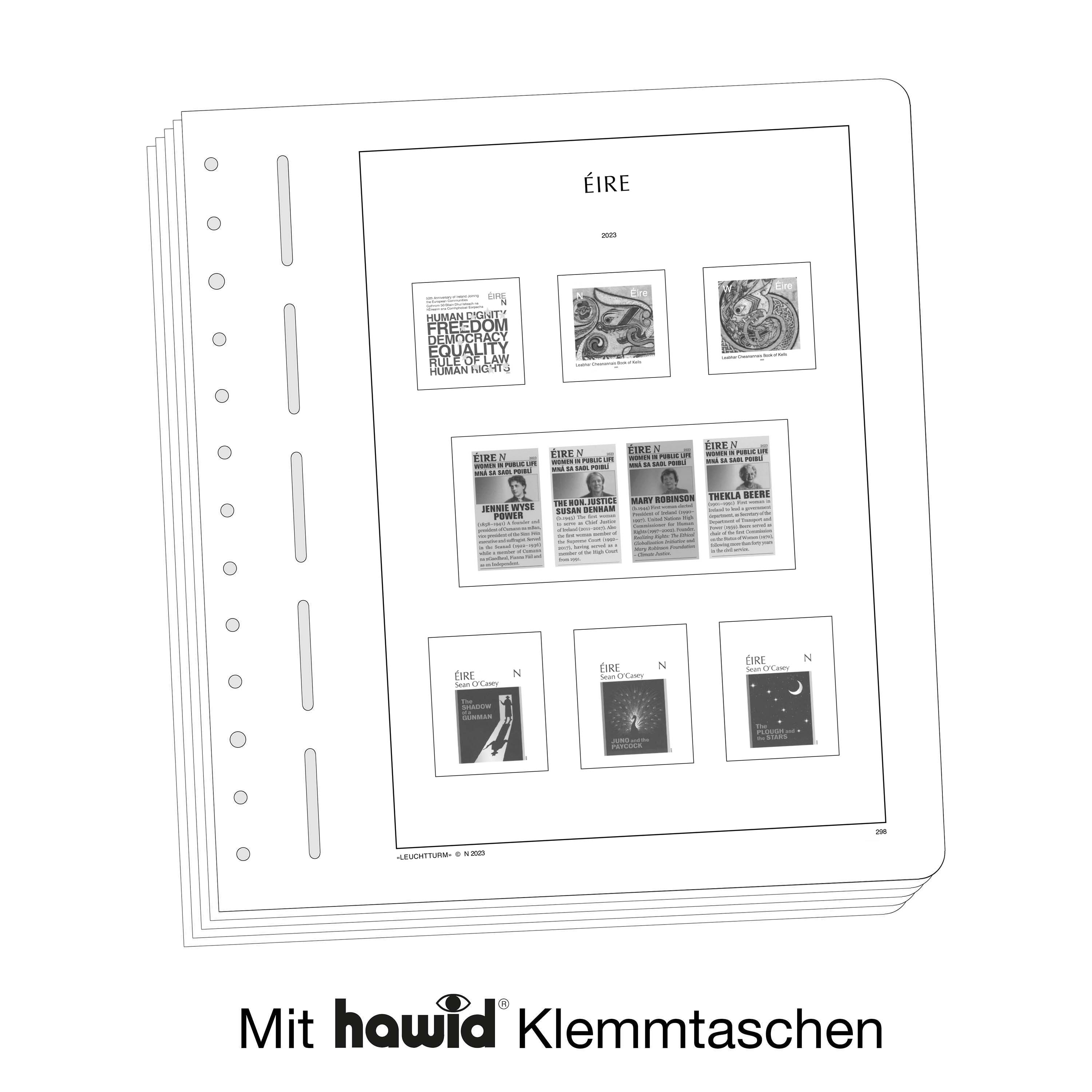 LIGHTHOUSE illustrated pages (size 270 x 297 mm/13-hole system) are printed on non-ageing wood and acid-free card (170 g/m 2 ) in high-resolution black and white offset print. Colour printing is consciously avoided. This allows you to immediately spot the missing stamps in your collection.
