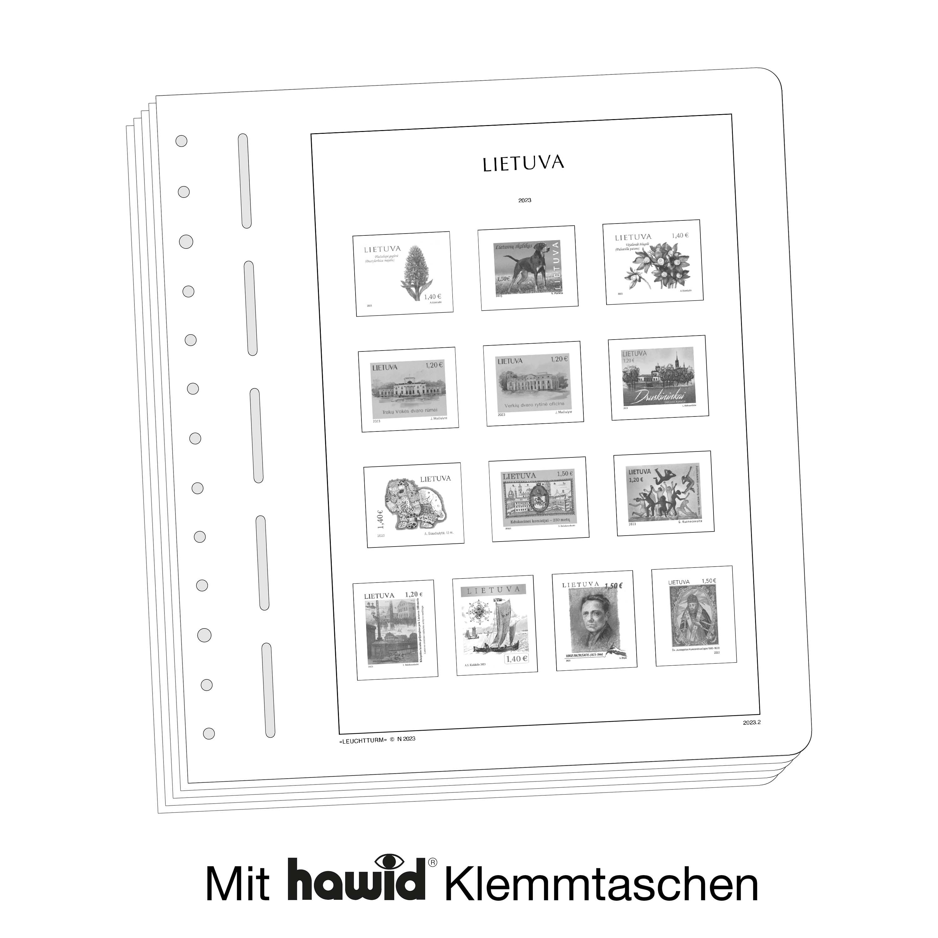 LIGHTHOUSE illustrated pages (size 270 x 297 mm/13-hole system) are printed on non-ageing wood and acid-free card (170 g/m 2 ) in high-resolution black and white offset print. Colour printing is consciously avoided. This allows you to immediately spot the missing stamps in your collection.