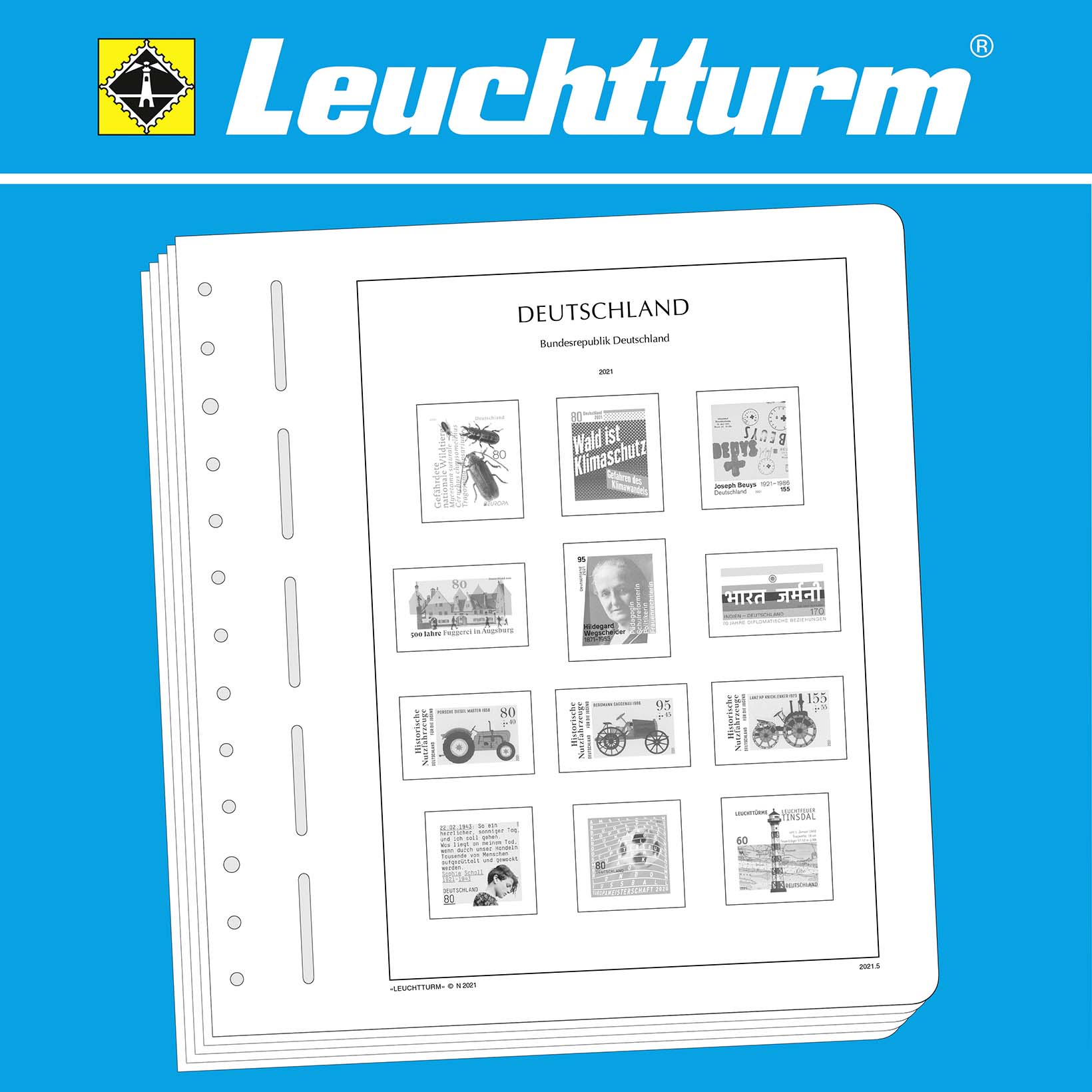 LIGHTHOUSE illustrated pages (size 270 x 297 mm/13-hole system) are printed on non-ageing wood and acid-free card (170 g/m 2 ) in high-resolution black and white offset print. Colour printing is consciously avoided. This allows you to immediately spot the missing stamps in your collection.