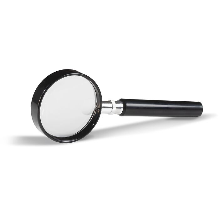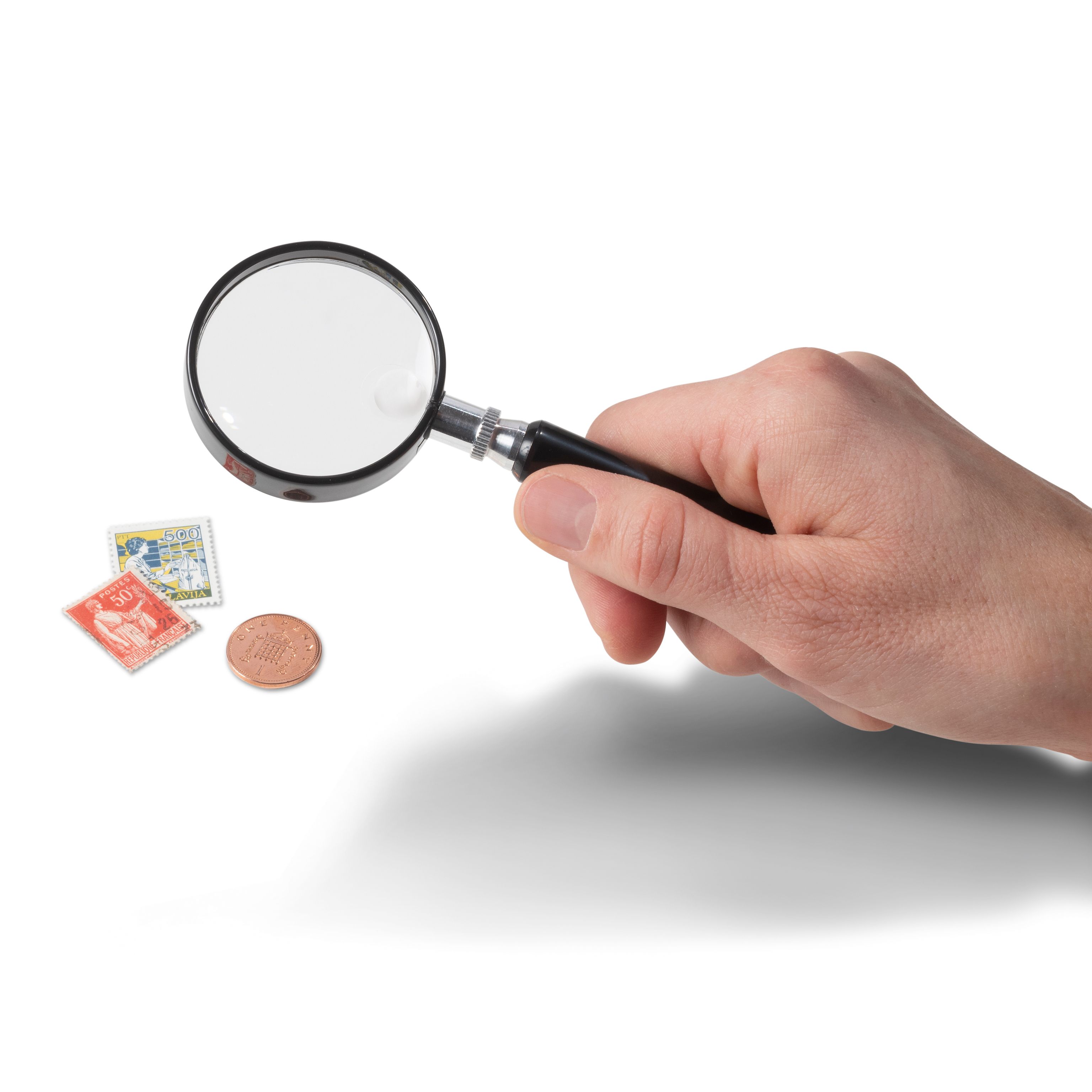 Magnifier glass with handle. acrylic lens with lens diameter of 50 mm (approx. 2") and magnification 3x and 6x