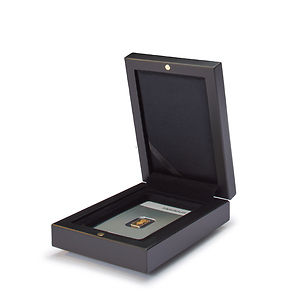 For the most elegant presentation of bullion in blister packaging may we recommend these high-quality coin boxes with silk-lined lid. A satin ribbon inside the lid can hold a certificate if desired. A sturdy metal frame protects the coin and thus makes it perfectly safe for postage as well as storage. Suitable for all blister packaging with up to 86 x 54 mm.