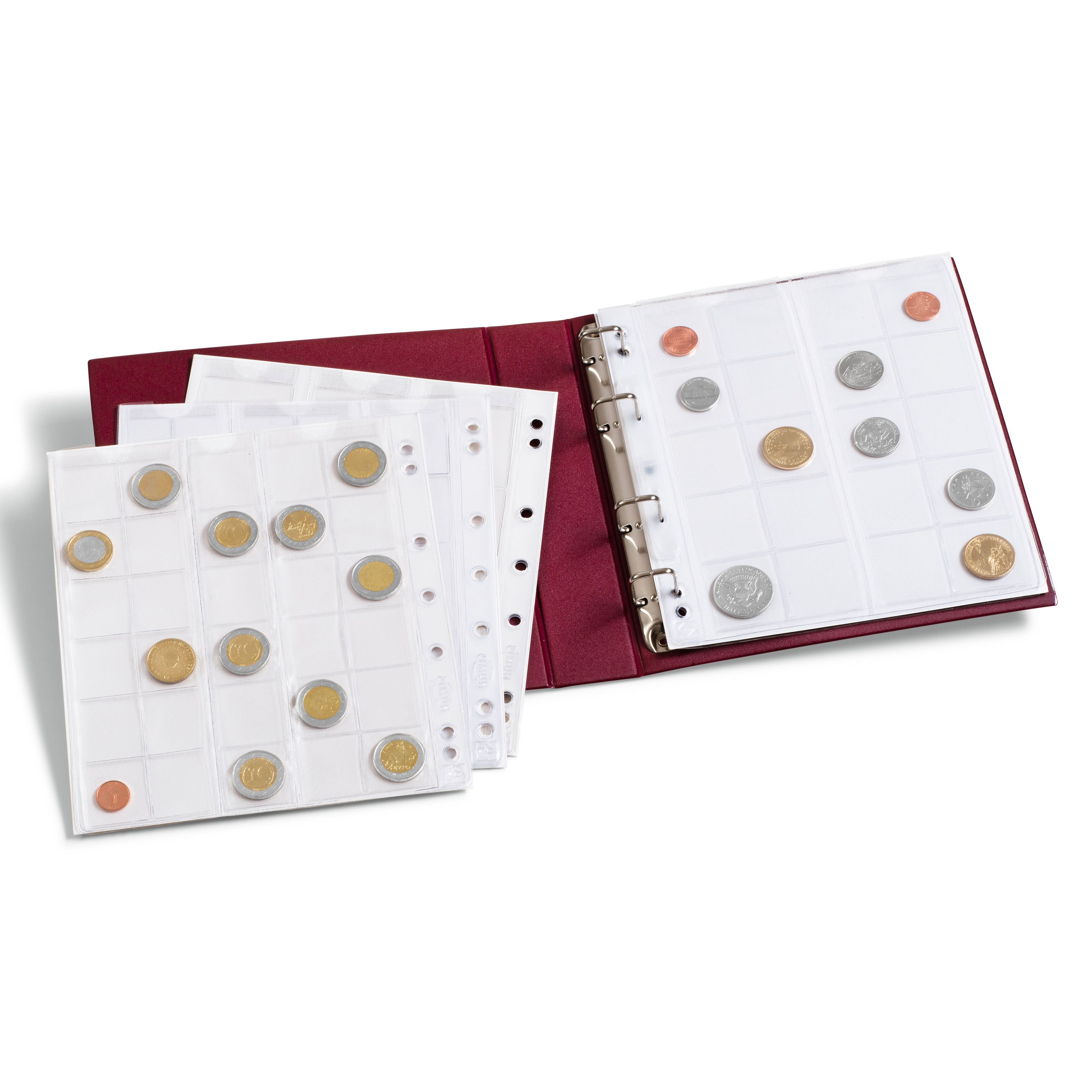 • Holds up to 15 coin sheets