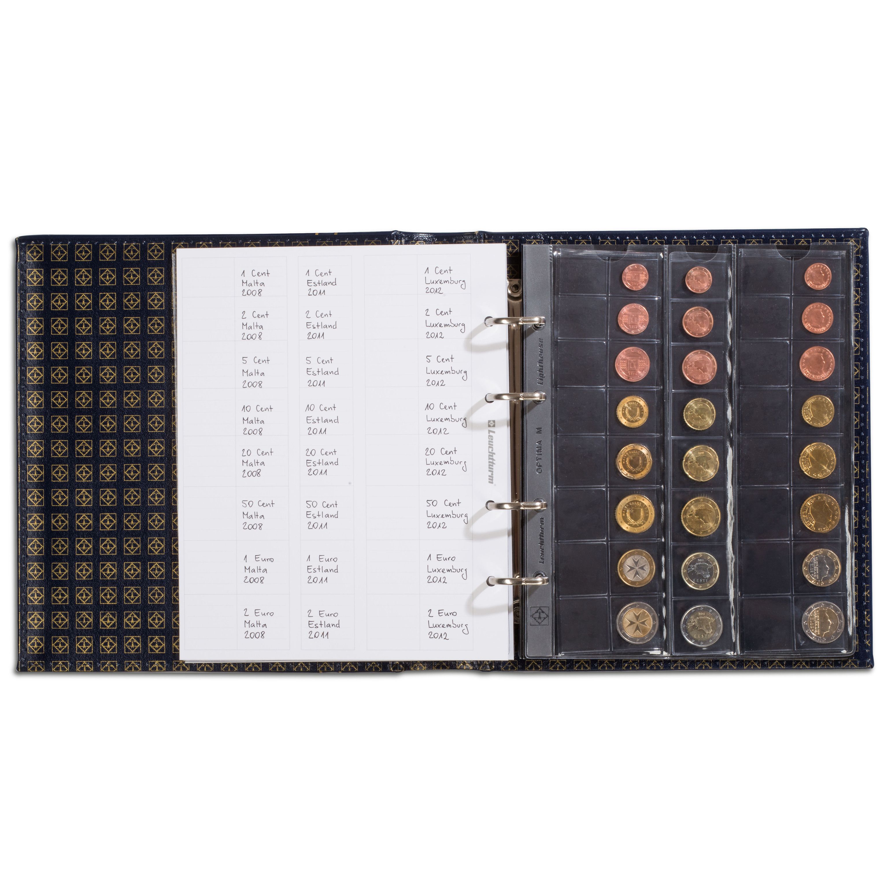OPTIMA coin sheets to store 152 coins in total with different diameters (20 to 42 mm diameter). Plasticiser-free inserts. Suitable for all other LIGHTHOUSE ring binders.