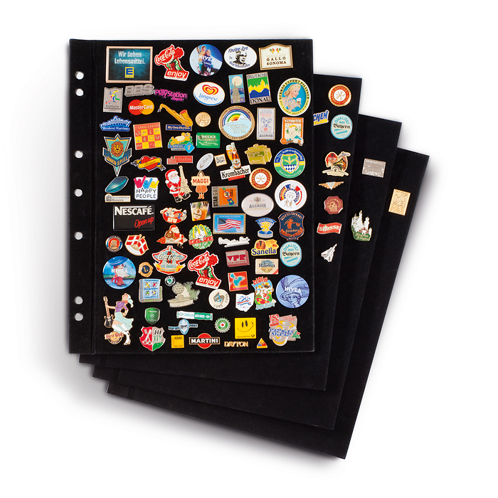 Usage is effortless: simply push your pins through the velvety surface and secure them from behind with the clasps – safe, neat, and beautifully displayed. Additionally, the set includes 4 black plastic interleaving pages that provide optimal protection for your pins. This ensures that the fronts of your pins are not scratched or damaged by the clasps of the pins above.