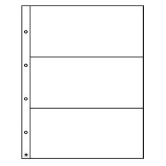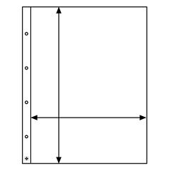 Item number: 800230Clear plastic stock pages for holding historical “Folio” documents (210 x 330 mm / 8 ¼ x 13’’) , American “Legal” documents (216 x 356 mm / 8 ½ x 14’’) and for certificates, documents, postcards and banknotes. 5 different strip divisions. The sheets can be stored in the corresponding Folio album. Document quality: all sheets are made of polyester (free from both acids and chemical softener), which guarantees the best-possible protection for your collection, as well as perfect presentation.