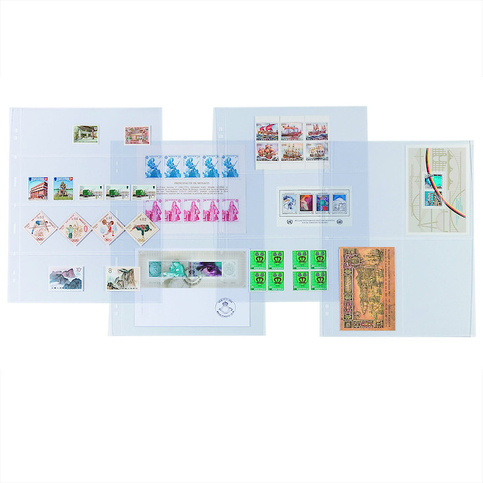 Item number: 800311Clear welded strips completely cover the inserted collection items, thereby offering optimum protection. Document quality: 100% free from chemical softeners and acids. 8-cm perforation. The clear C sheets allow one-sided storage, the double-sided black S sheets provide double capacity.