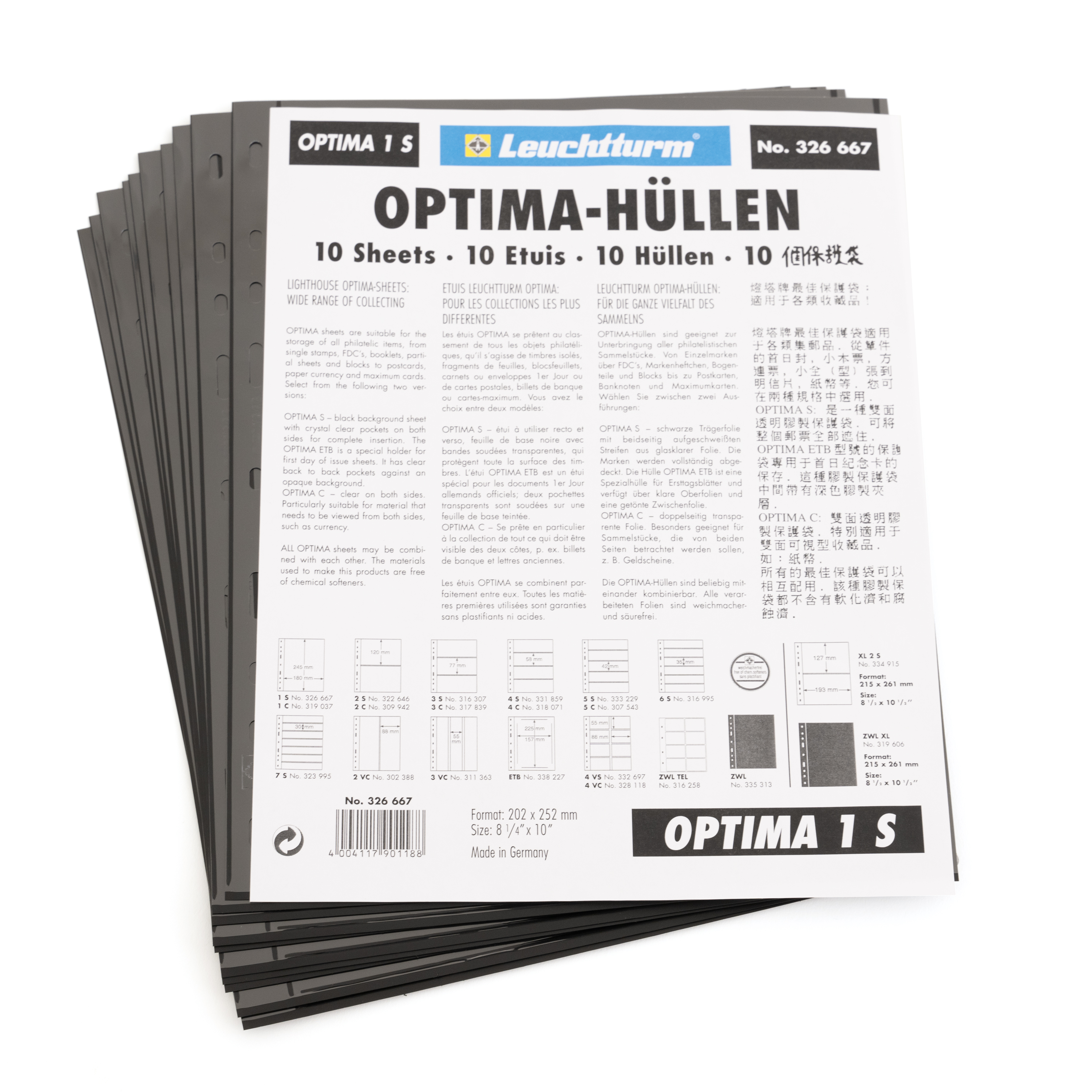 The OPTIMA sheets are made of a special film free of chemical softeners, 1-way division. Sheet size. 180 x 245 mm. Overall size: 202 x 252 mm. Colour: black