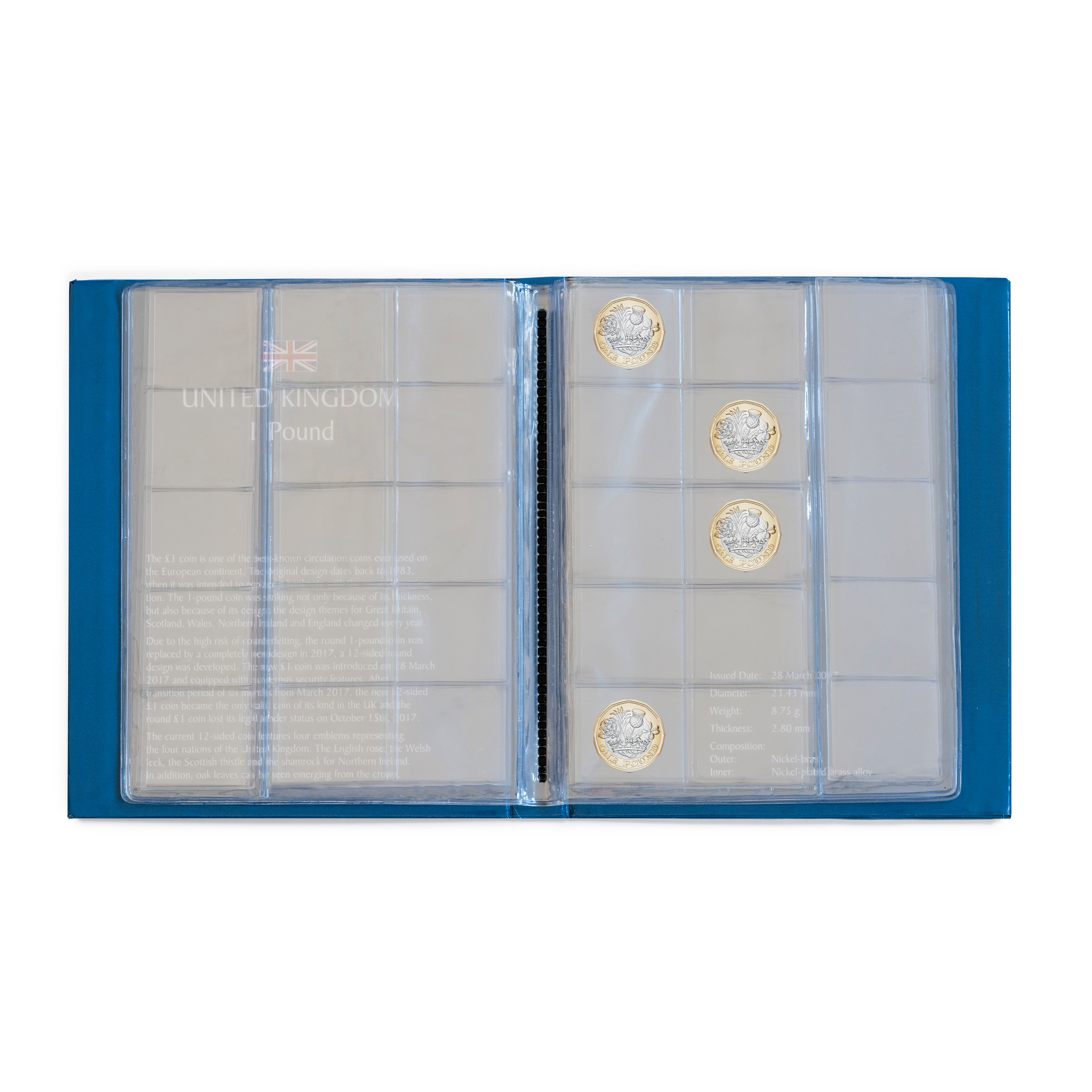 These sleek albums with bright laminated covers feature 4 inbound coin pages (6 pages in the 50P Version) with durable crystal-clear inserts (100% free of chemical softeners) to fit the respective coins. Give your pocket change a home in a safe and attractive environment and start your own UK coin collection.