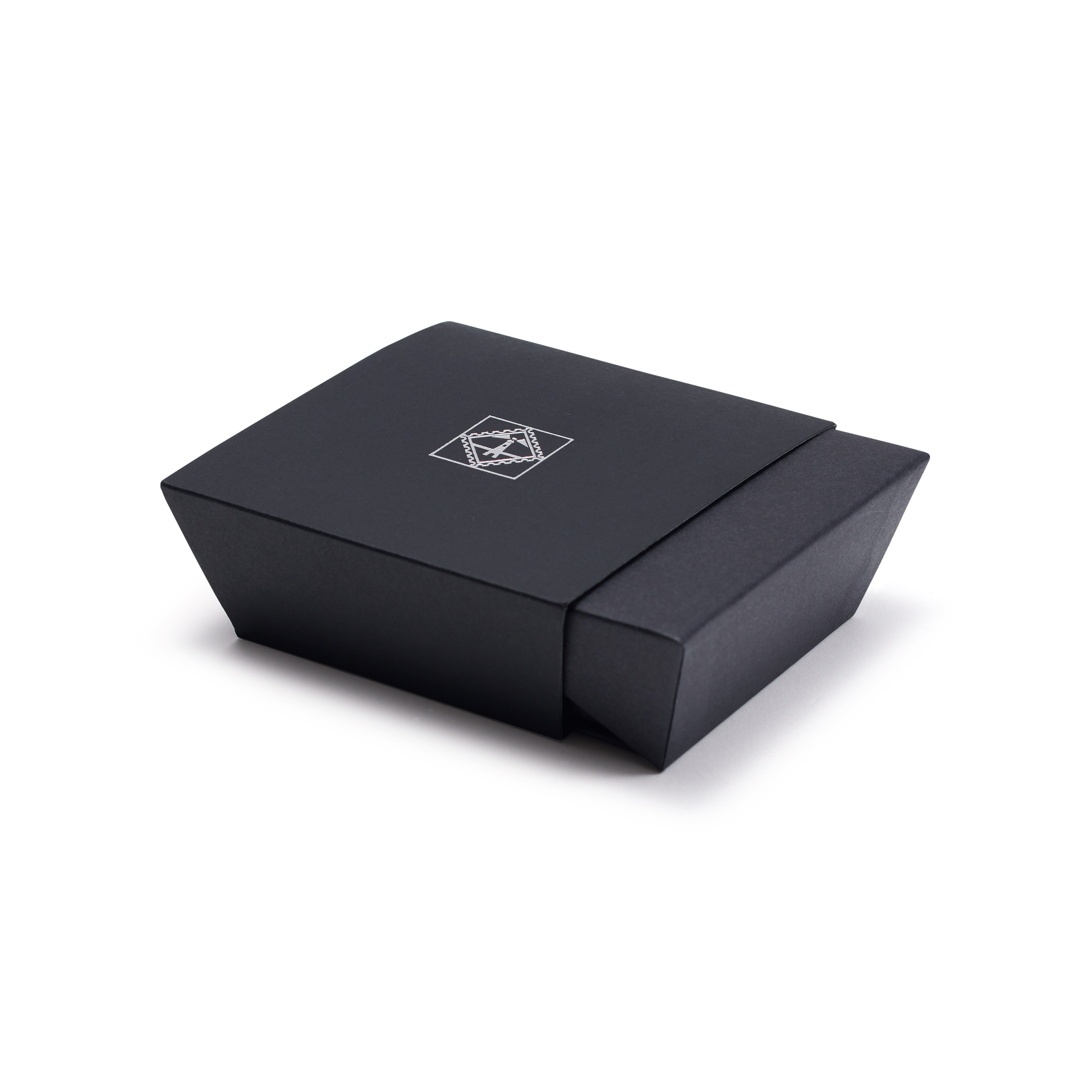 Thanks to an inconspicuous magnetic fastener, the case remains securely closed during transport. The perfectly-fitting inlay, which is made of moulded paper, is the heart of the case.