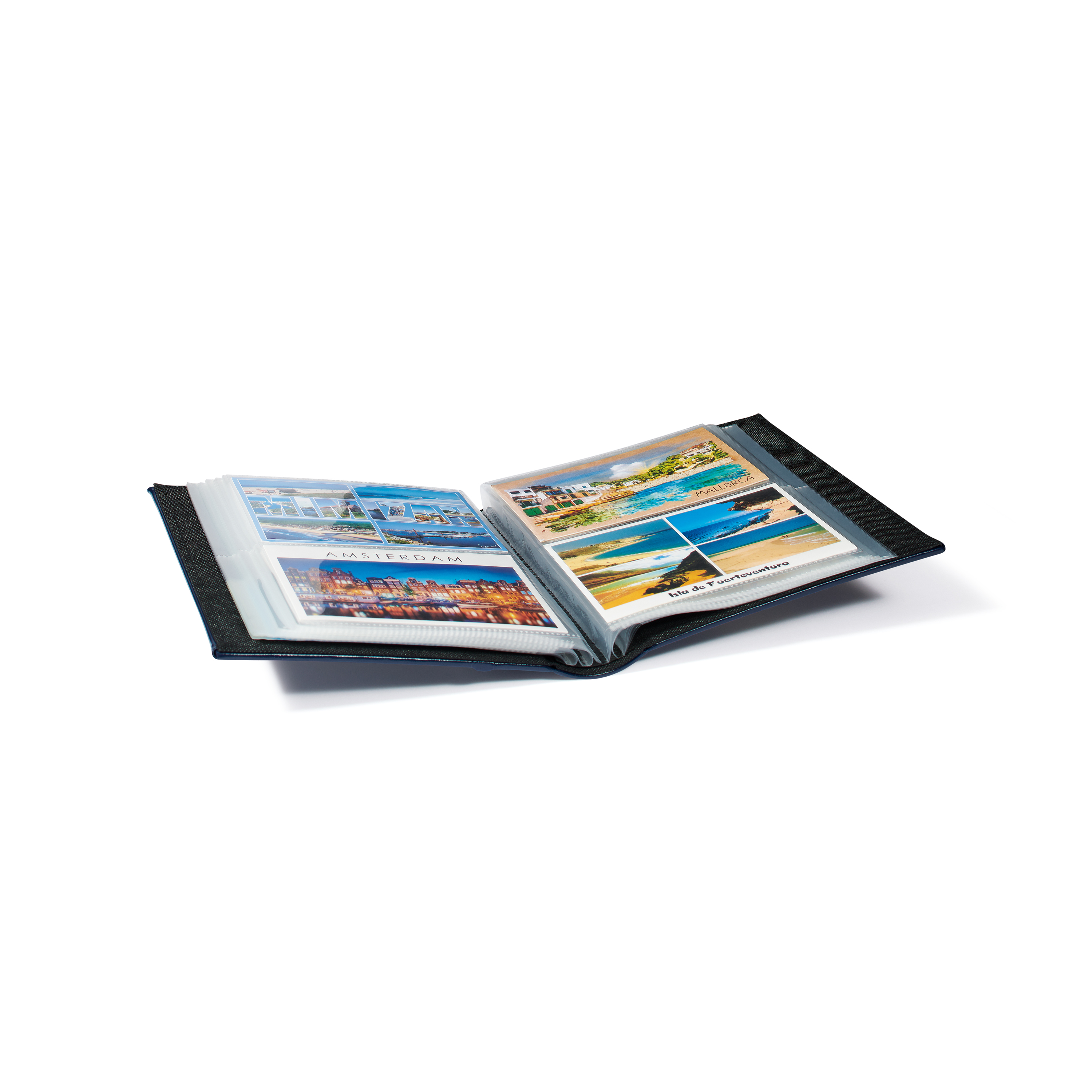 Postcard album with 50 clear pockets, blue