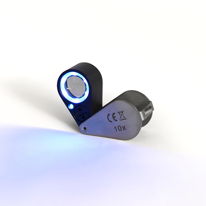 Precision Magnifier with LED and UV lamp, 10x magnification, 6 white hi-tech and 7 UV LEDs